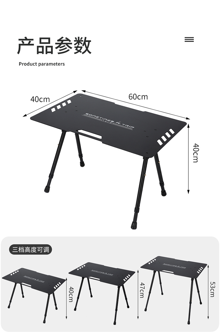 • 블랙 접이식 전술 테이블 (다리 텔레스코픽) 3 하이츠