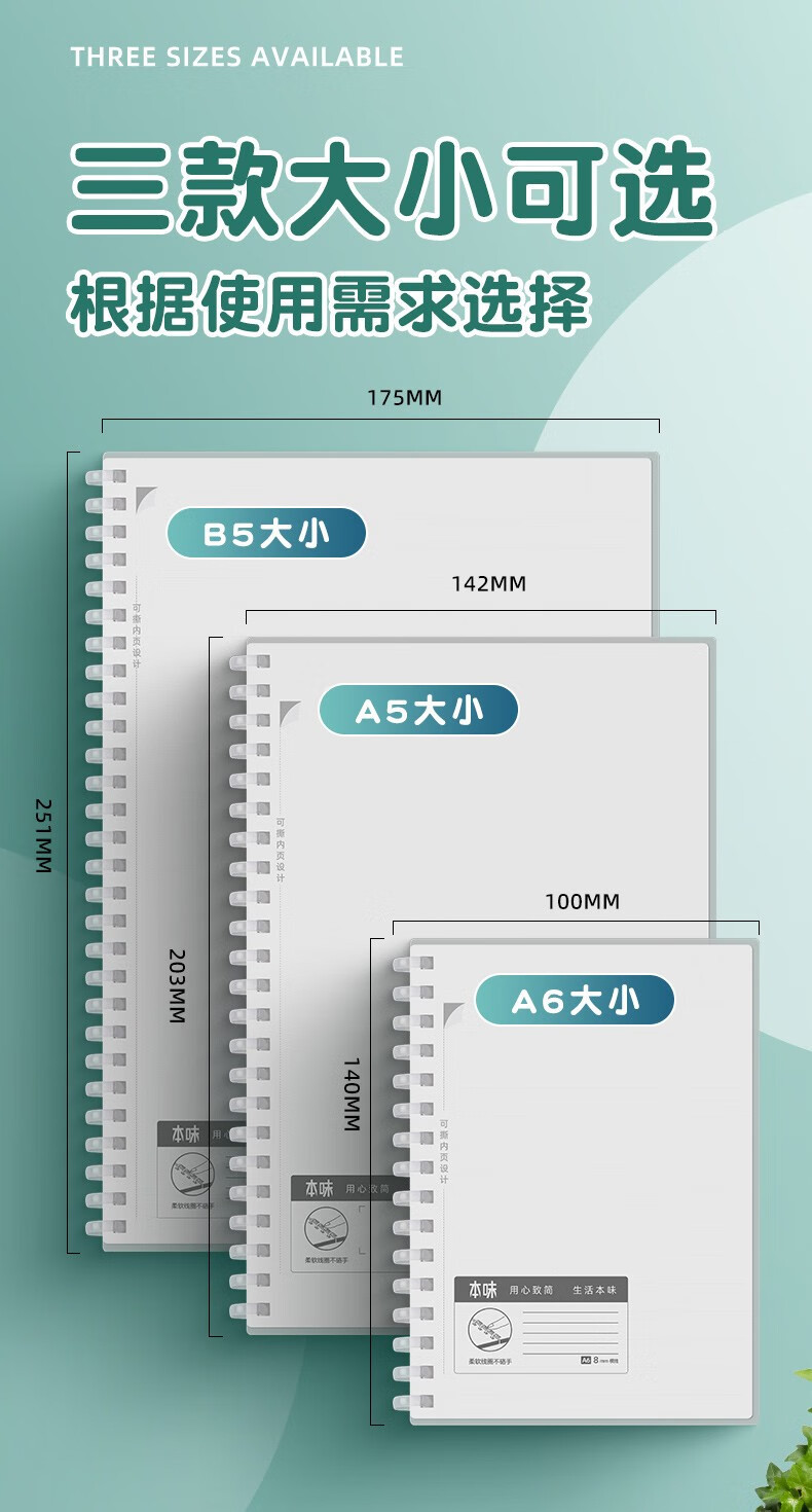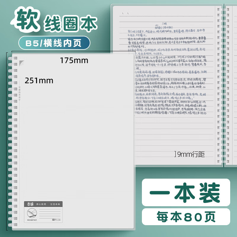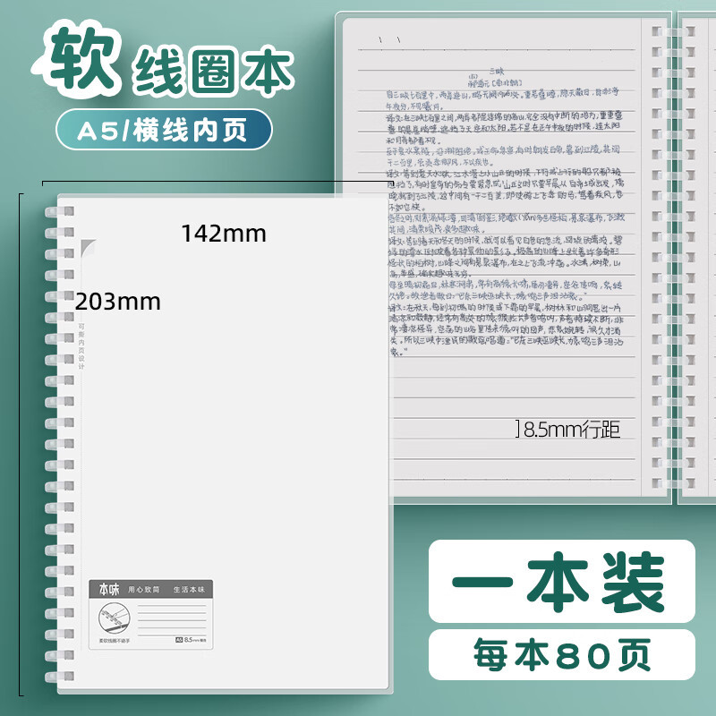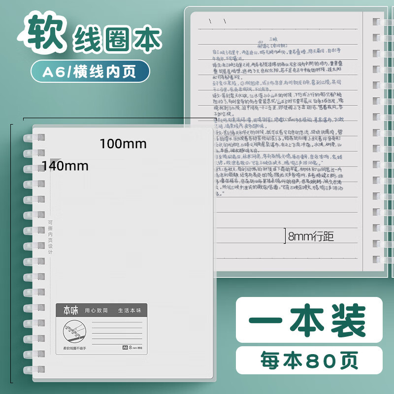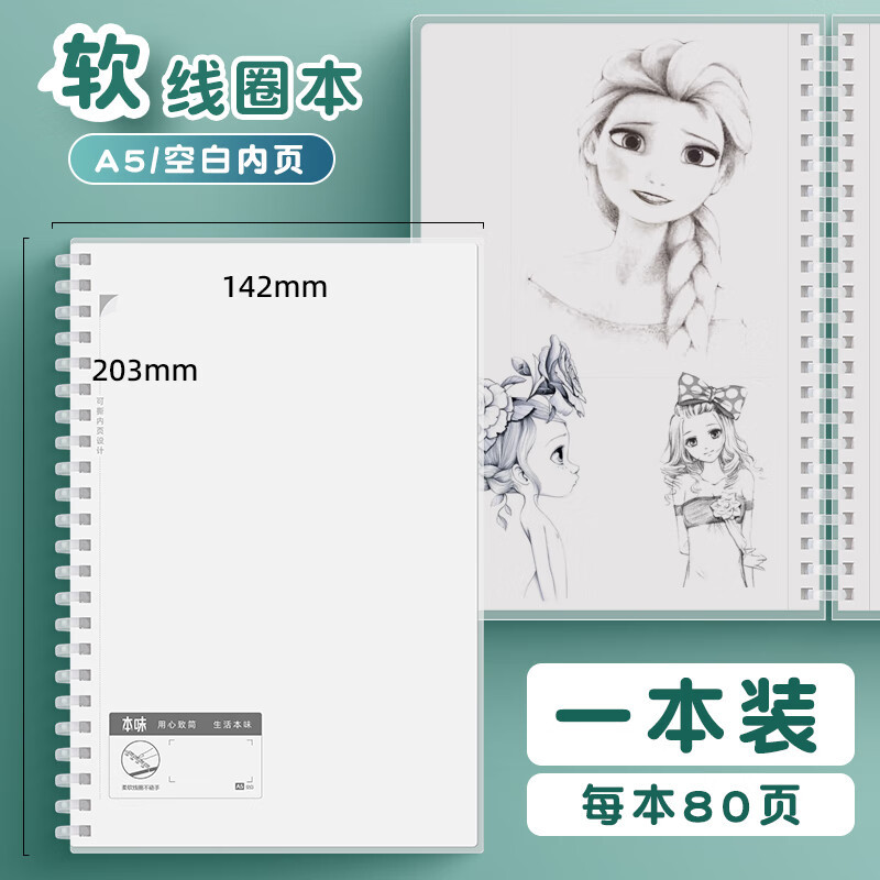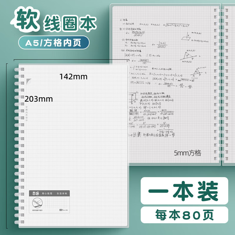 청광 오리지널 소프트 코일 북 A5/B5/A6 수평 그리드 빈 pp 커버 메모장 80 페이지 노트북스토어 가기