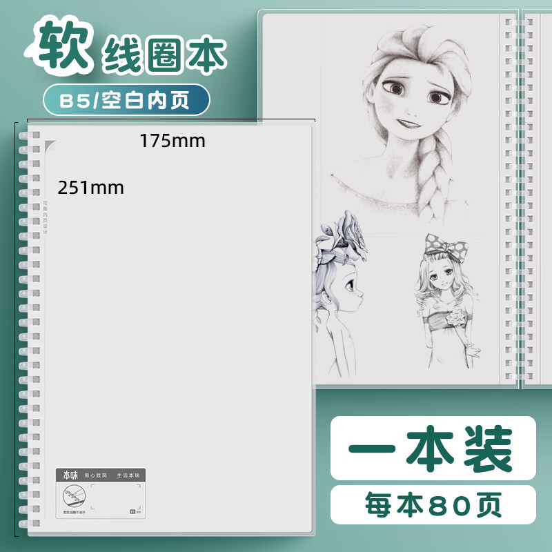 청광 오리지널 소프트 코일 북 A5/B5/A6 수평 그리드 빈 pp 커버 메모장 80 페이지 노트북
