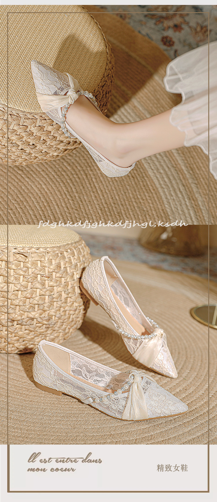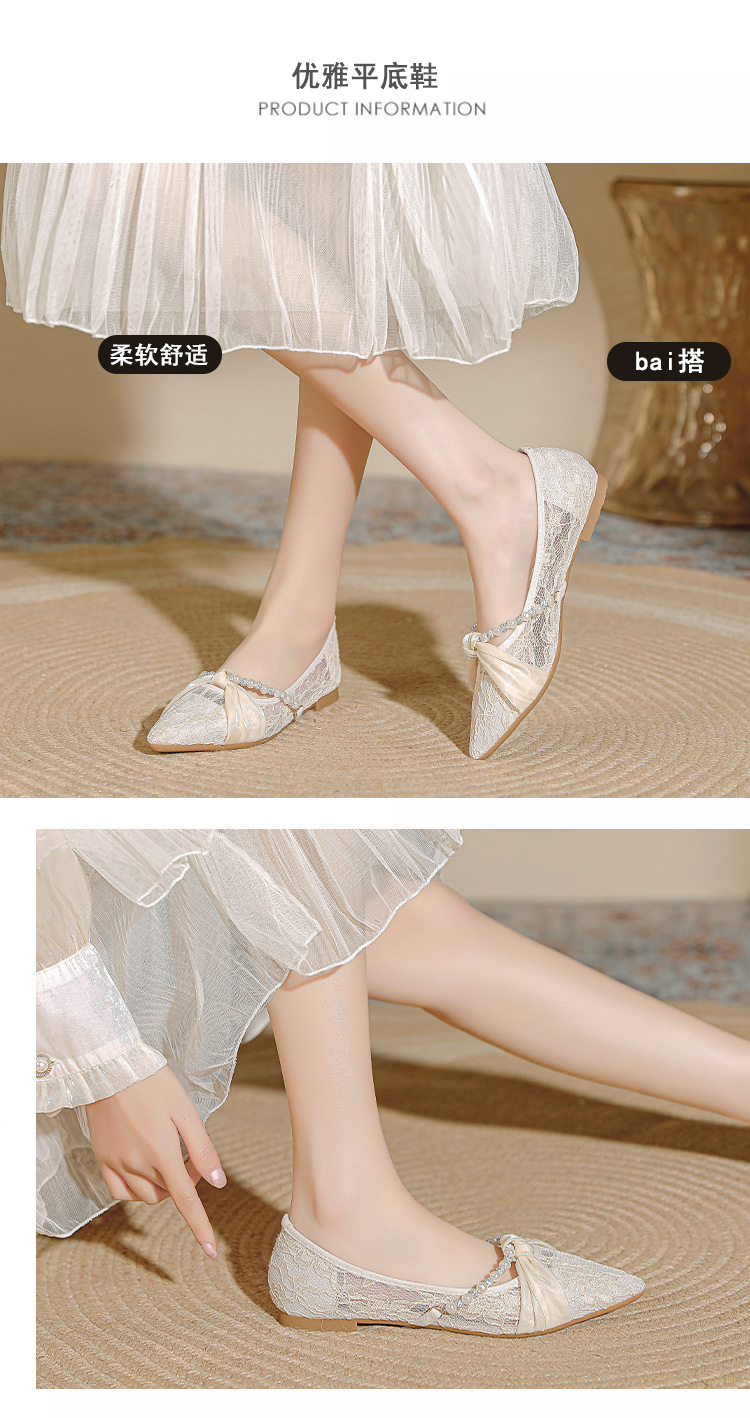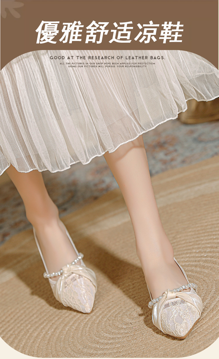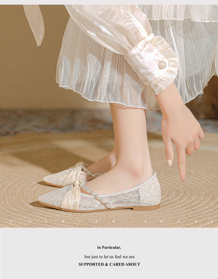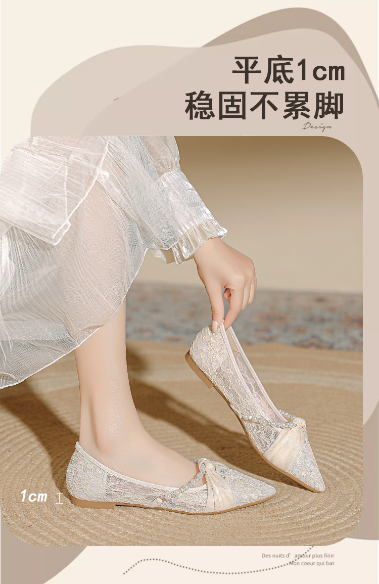 프랑스 스타일 여성 신발 플랫 바닥 2025 새로운 요정 스타일 진주 신부 들러리 신발 메쉬 통기성 부드러운 샌들 여성스토어 가기