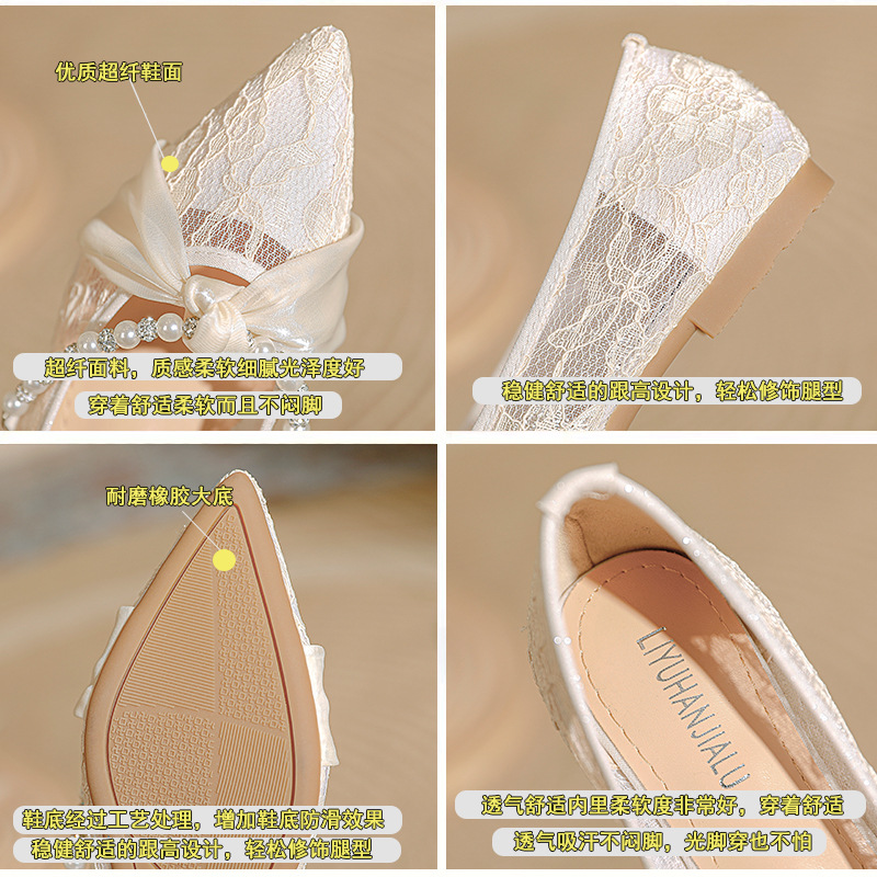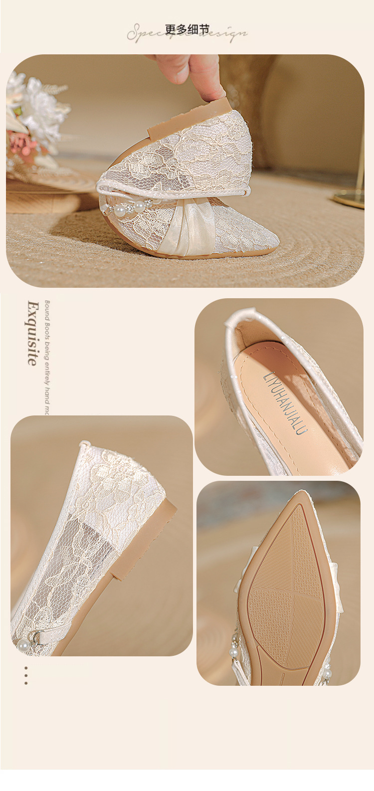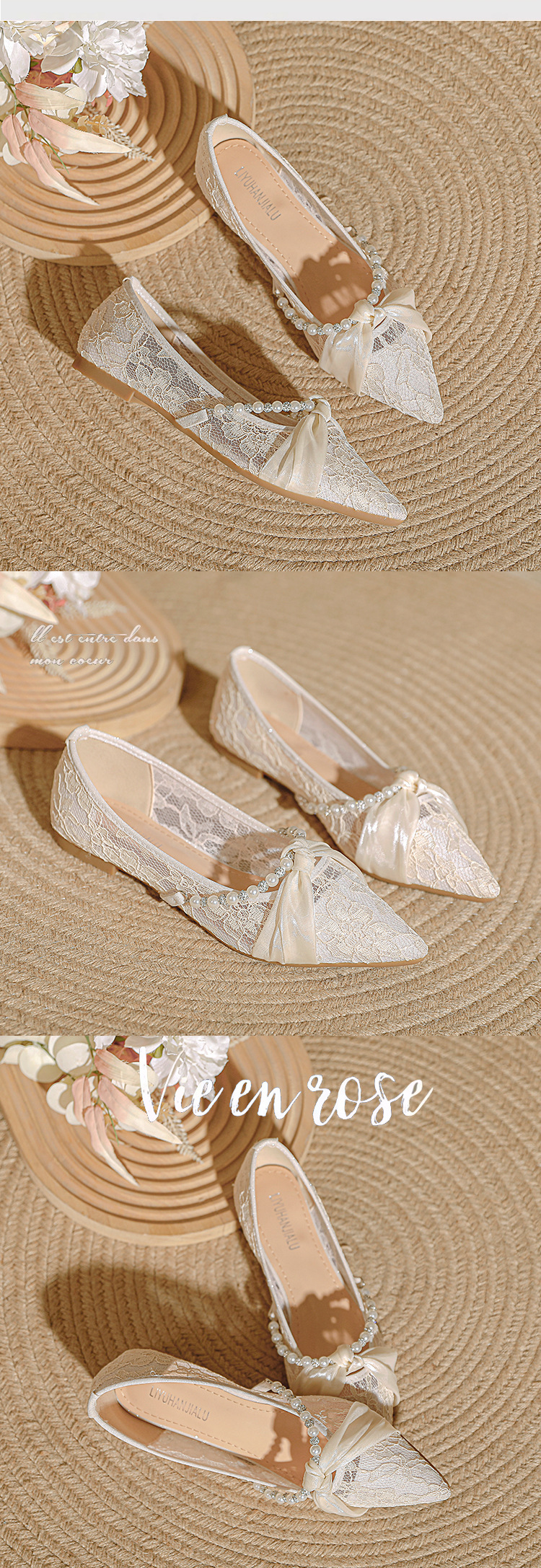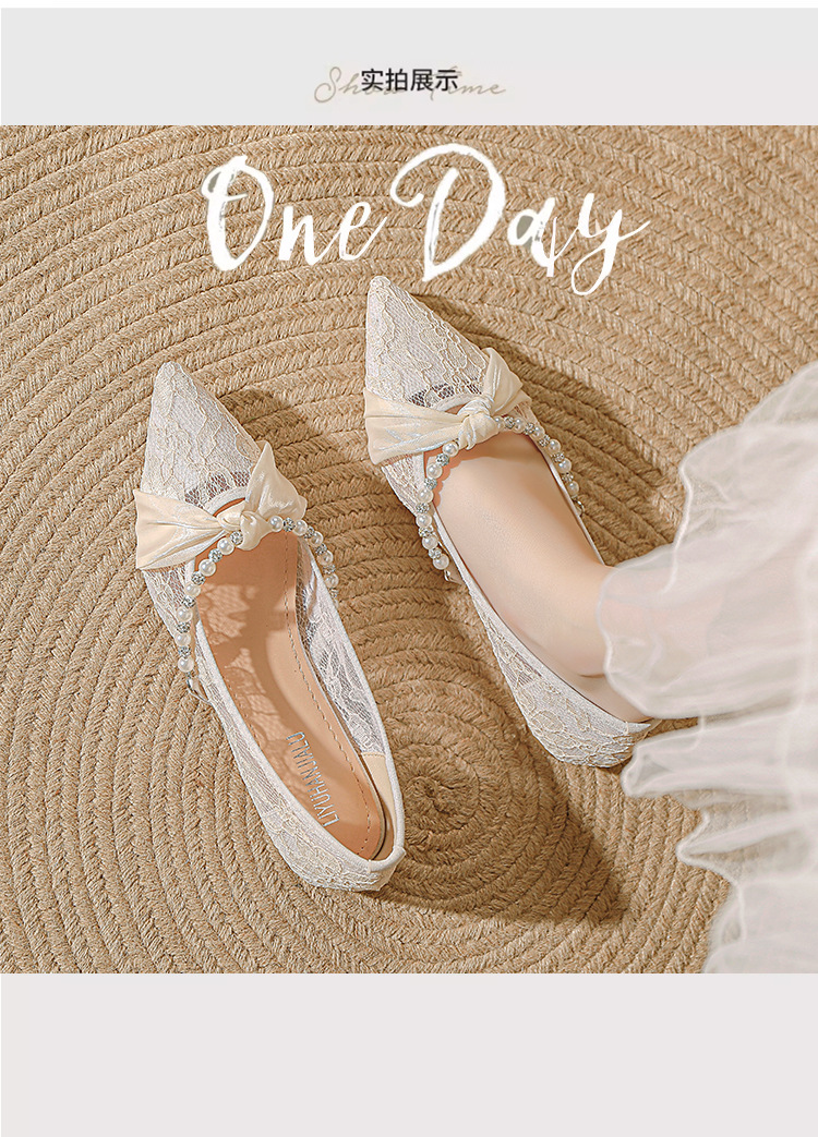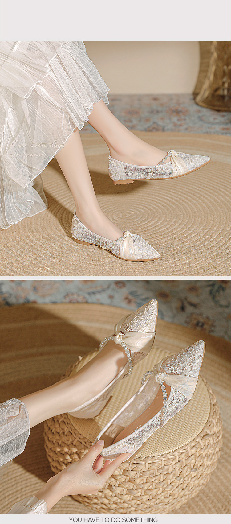 프랑스 스타일 여성 신발 플랫 바닥 2025 새로운 요정 스타일 진주 신부 들러리 신발 메쉬 통기성 부드러운 샌들 여성스토어 가기