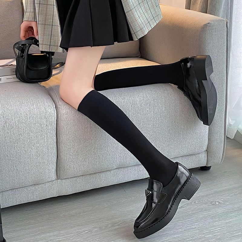 일본 프레피 스타일 송아지 양말 여성의 간단한 올 매치 스타킹 봄과 가을 겉옷 흑백 슬림 무릎 길이 jk 스타킹스토어 가기