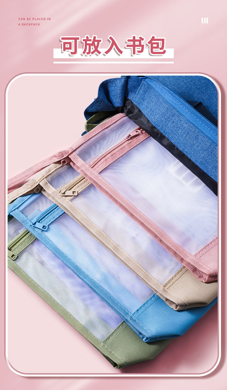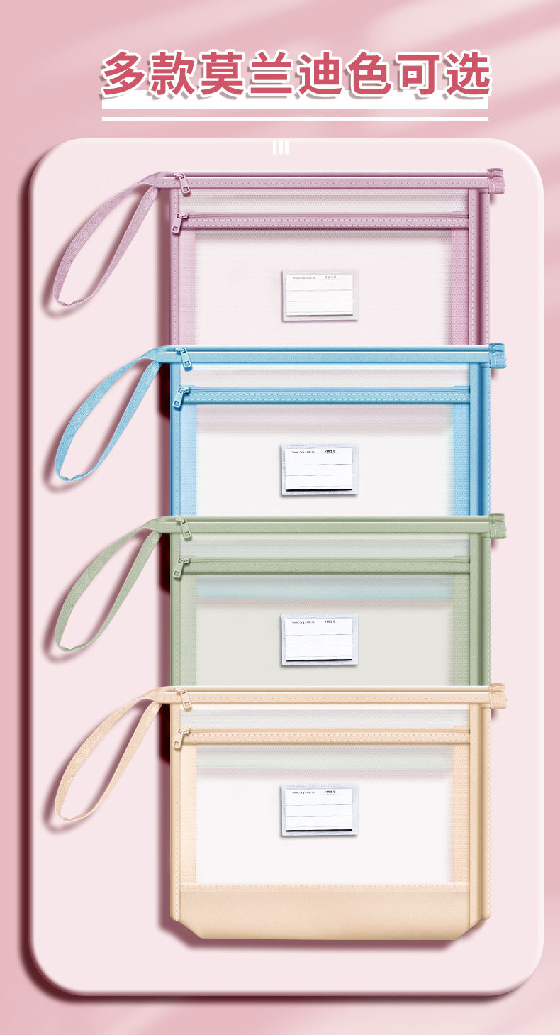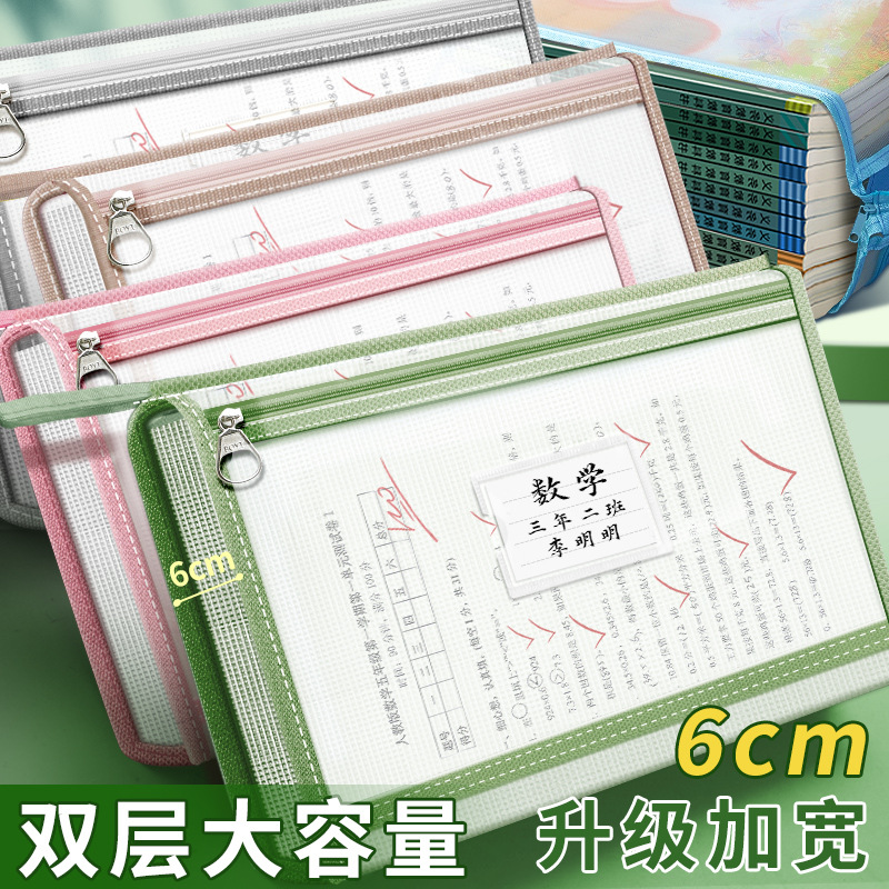 A4 더블 레이어 파일 가방 지퍼 투명 메쉬 제목 분류 가방 소재 테스트 종이 보관 가방 휴대용스토어 가기