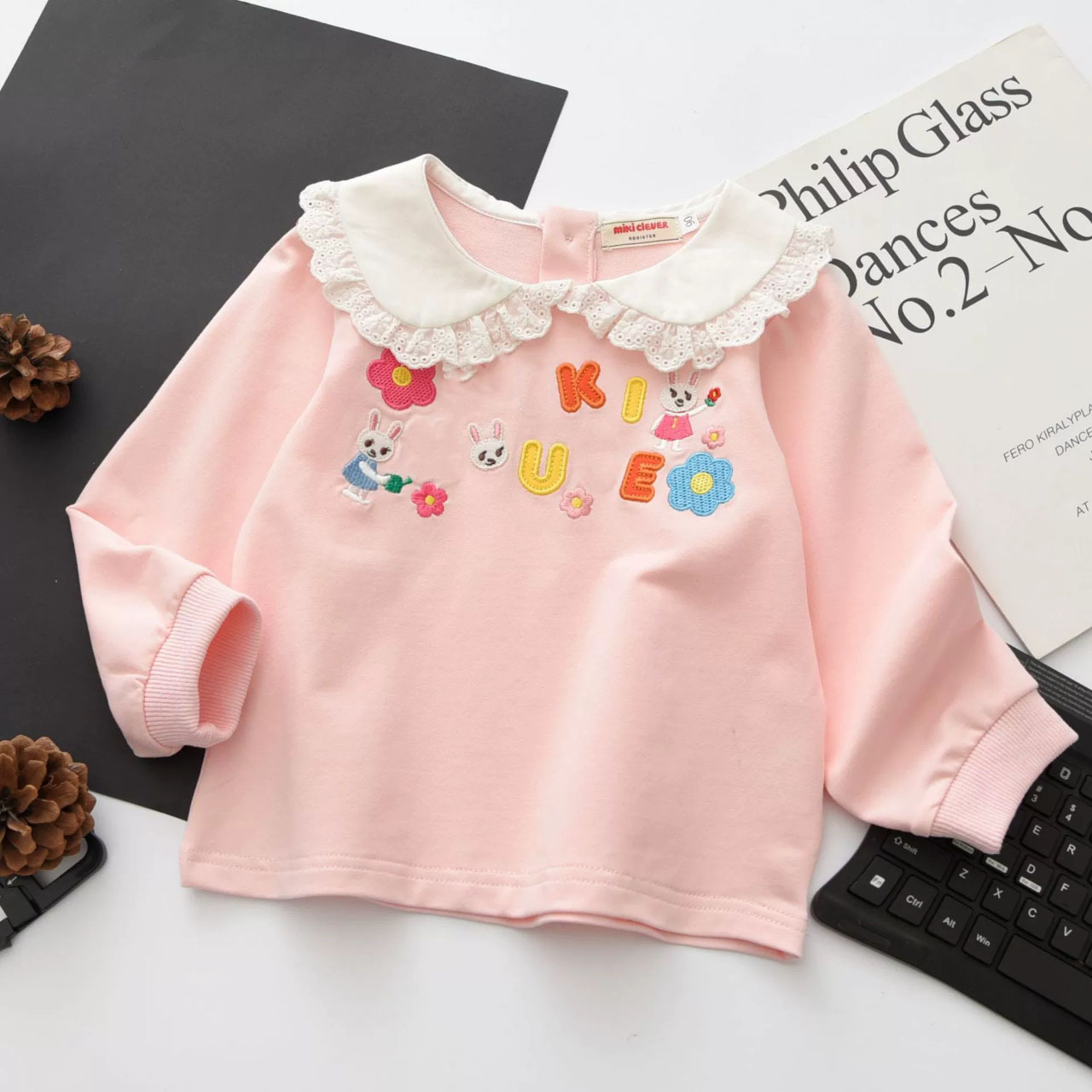 지모 아동복 도매 24 봄 새 소녀 의류 일본 만화 토끼 옷깃 편지 긴팔 티셔츠 3188