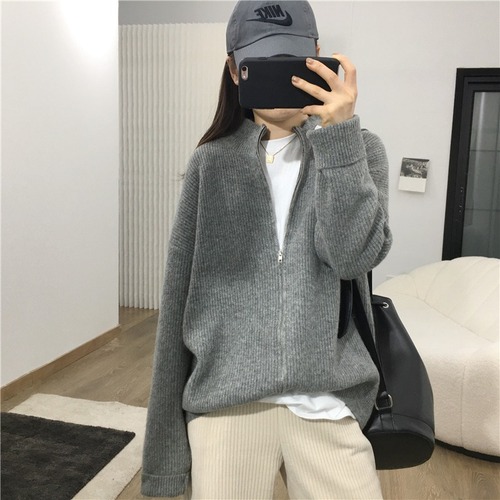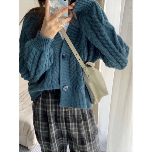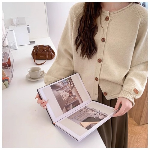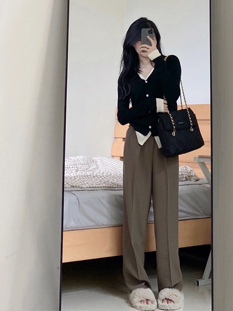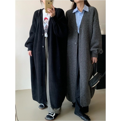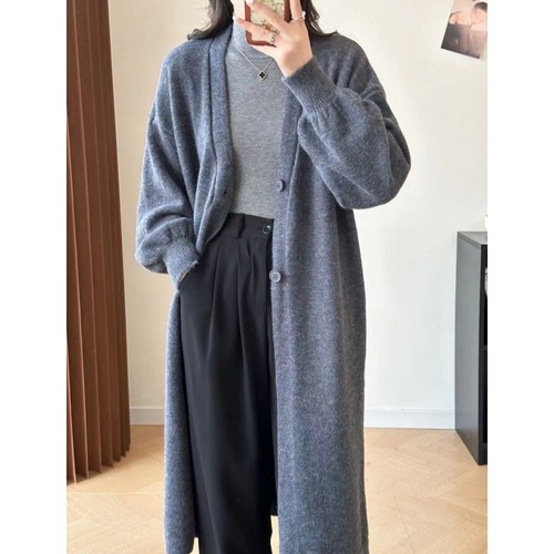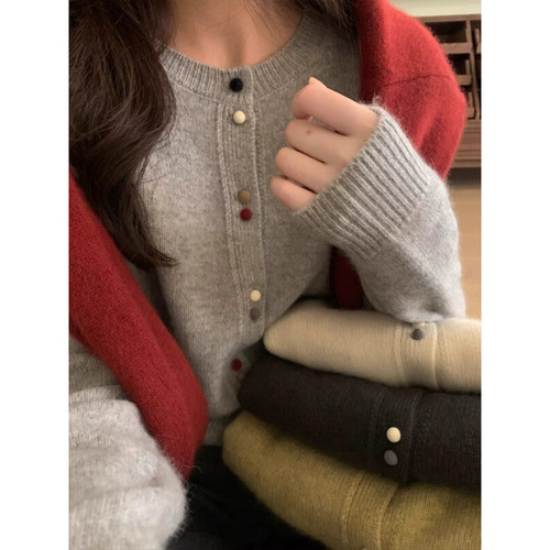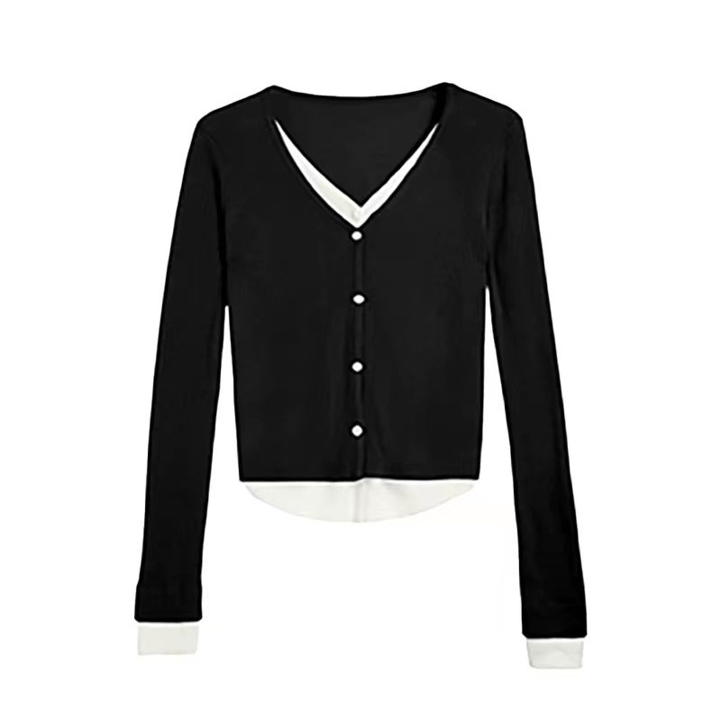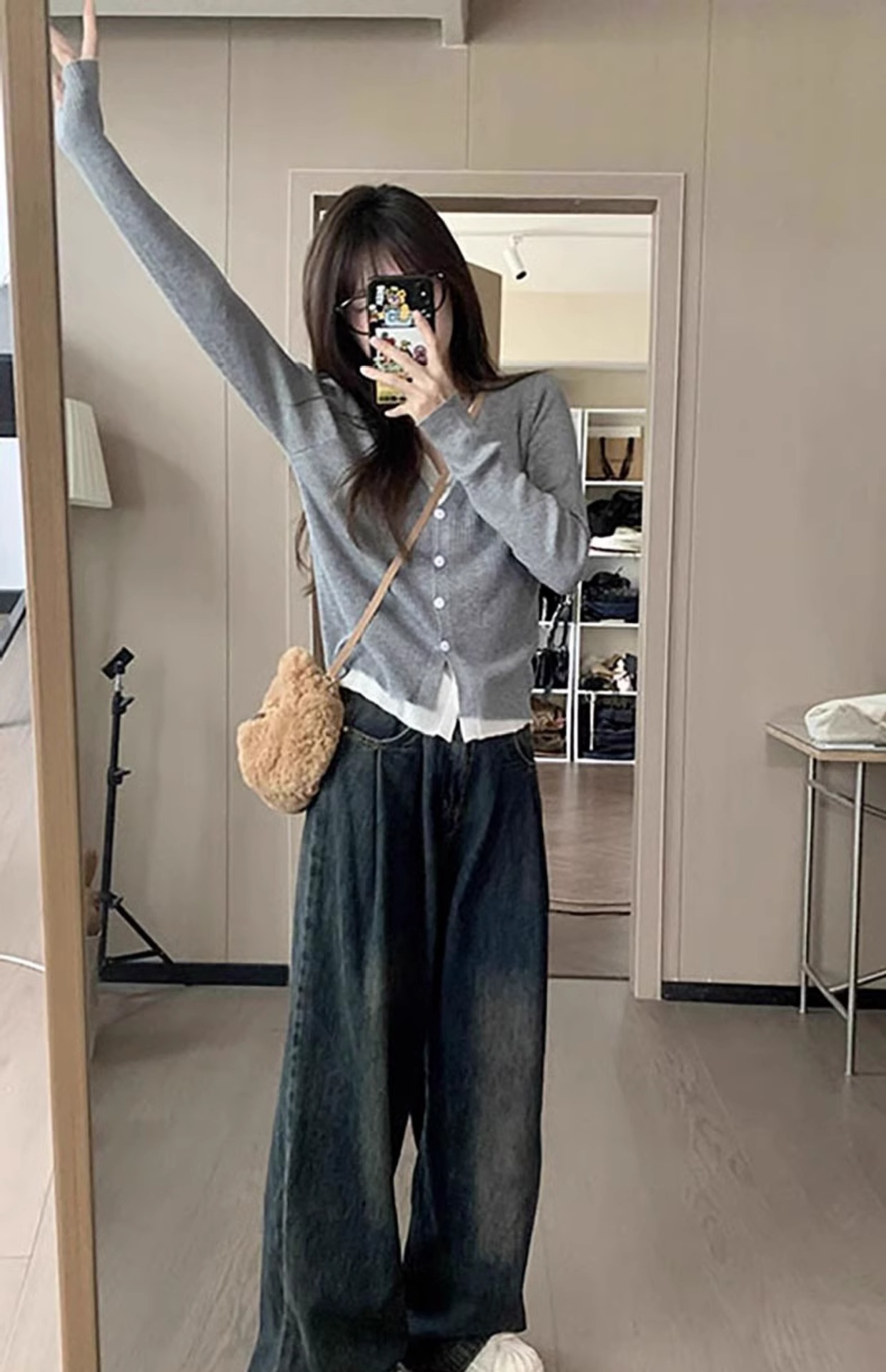 그레이 V 넥 페이크 투피스 니트 카디건 여성 2024 봄 새로운 디자인 센스 틈새 의상 세련된 탑스토어 가기