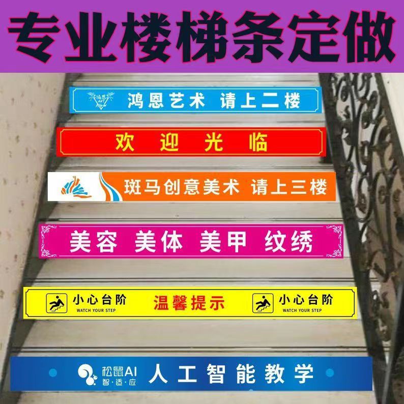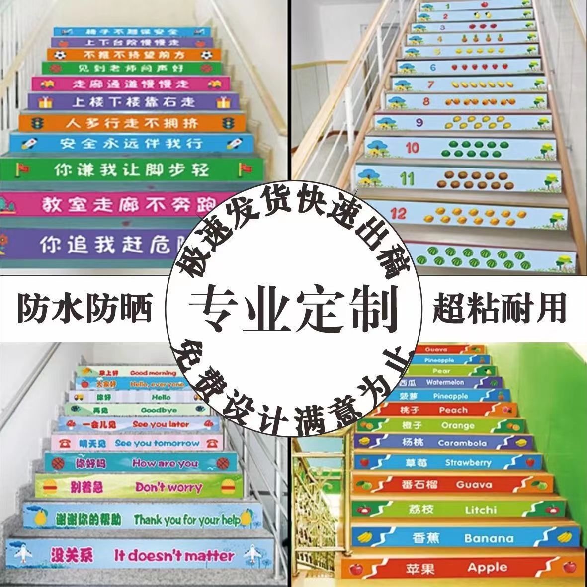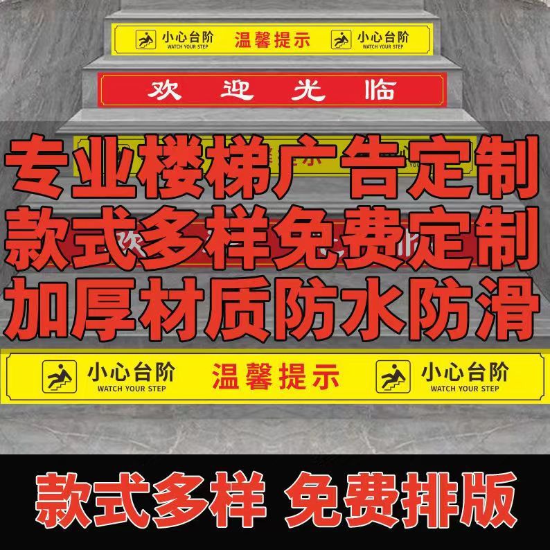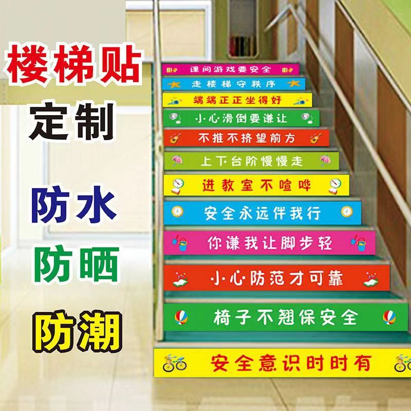 자가 접착식 계단 광고 스티커 방수 표지판 문앞 계단 주의 유치원 스티커 무광 필름 공정