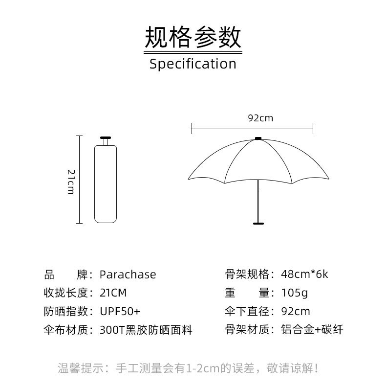 PARACHASE 탄소 섬유 깃털 우산 20D 초경량 비닐 자외선 방지 연필 우산 태양 방지 태양 우산 여성용스토어 가기