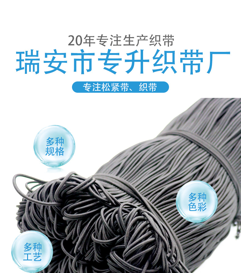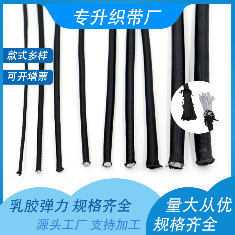 0.8mm-25mm 블랙 라텍스 탄성 로프 공장 직접 라운드 탄성 로프 의류 코트 및 모자 탄성 로프스토어 가기