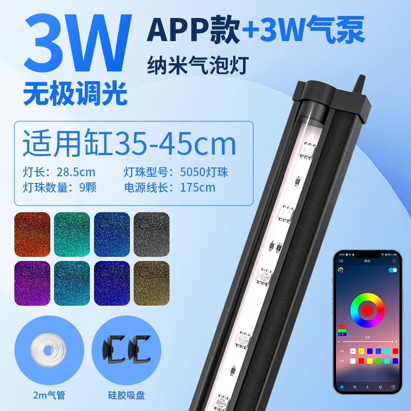 • APP 나노 버블 램프 38cm + 공기 파이프 + 3w 공기 펌프