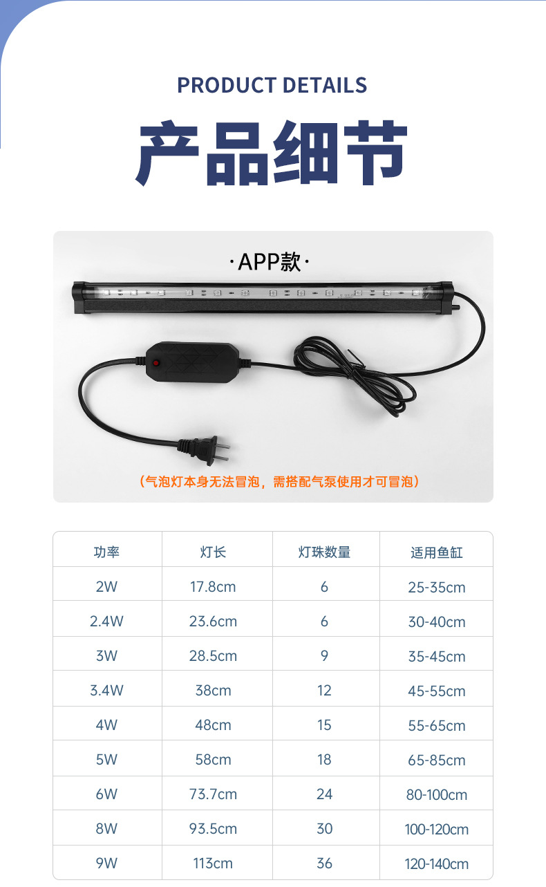 • APP 나노 버블 램프 93.5cm + 공기 파이프 + 8w 공기 펌프