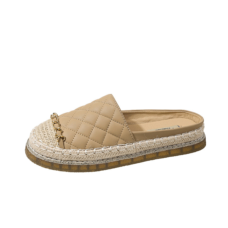 2024 봄 새로운 샤넬 스타일 패션 체인 폐쇄 발가락 어부 신발 하프 슬리퍼 캐주얼 플랫 샌들 여성 신발스토어 가기