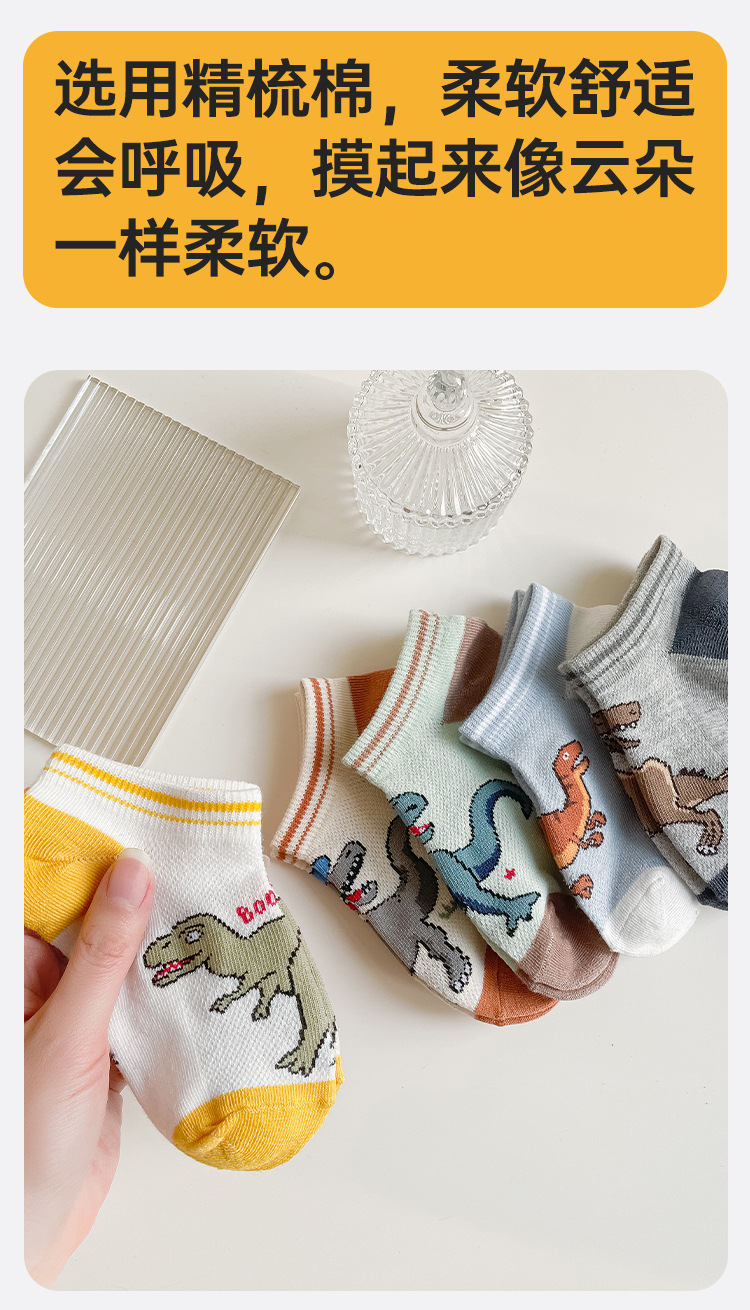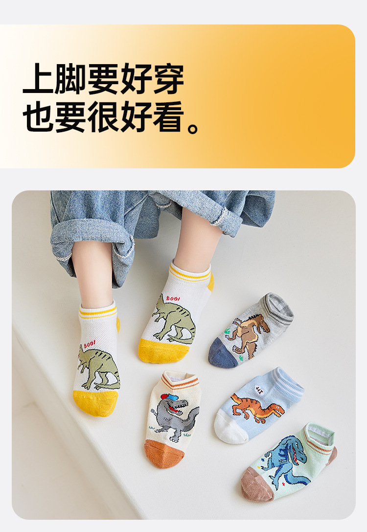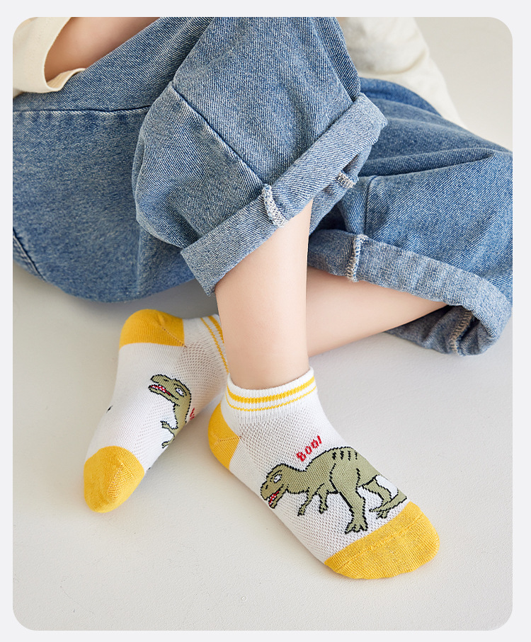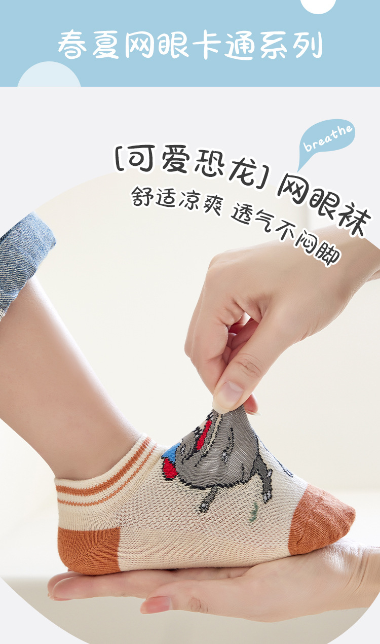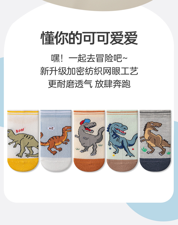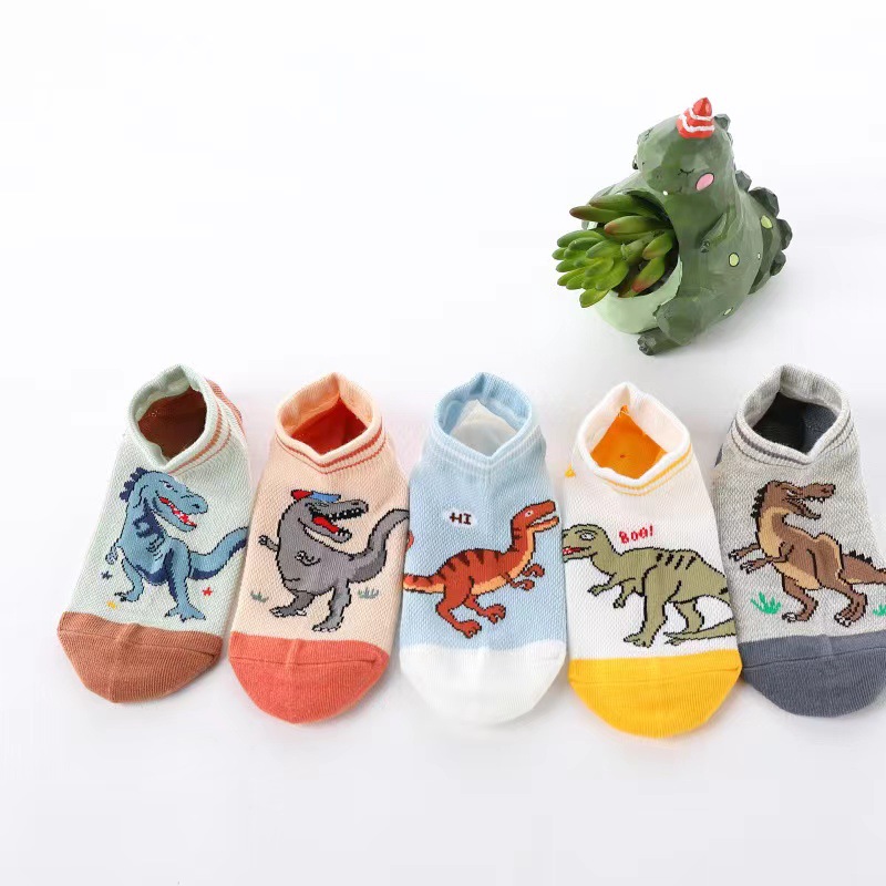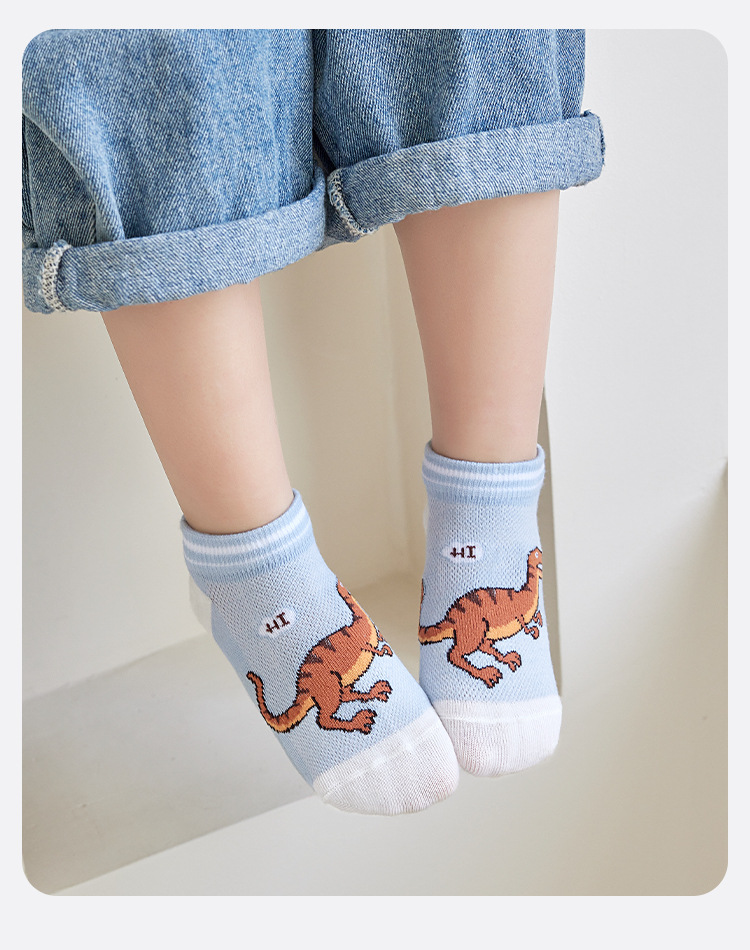 어린이 양말 봄과 여름 메쉬 얇은 만화 공룡 보트 양말 소년과 학생들을위한 통기성 트렌디 한 양말 도매스토어 가기