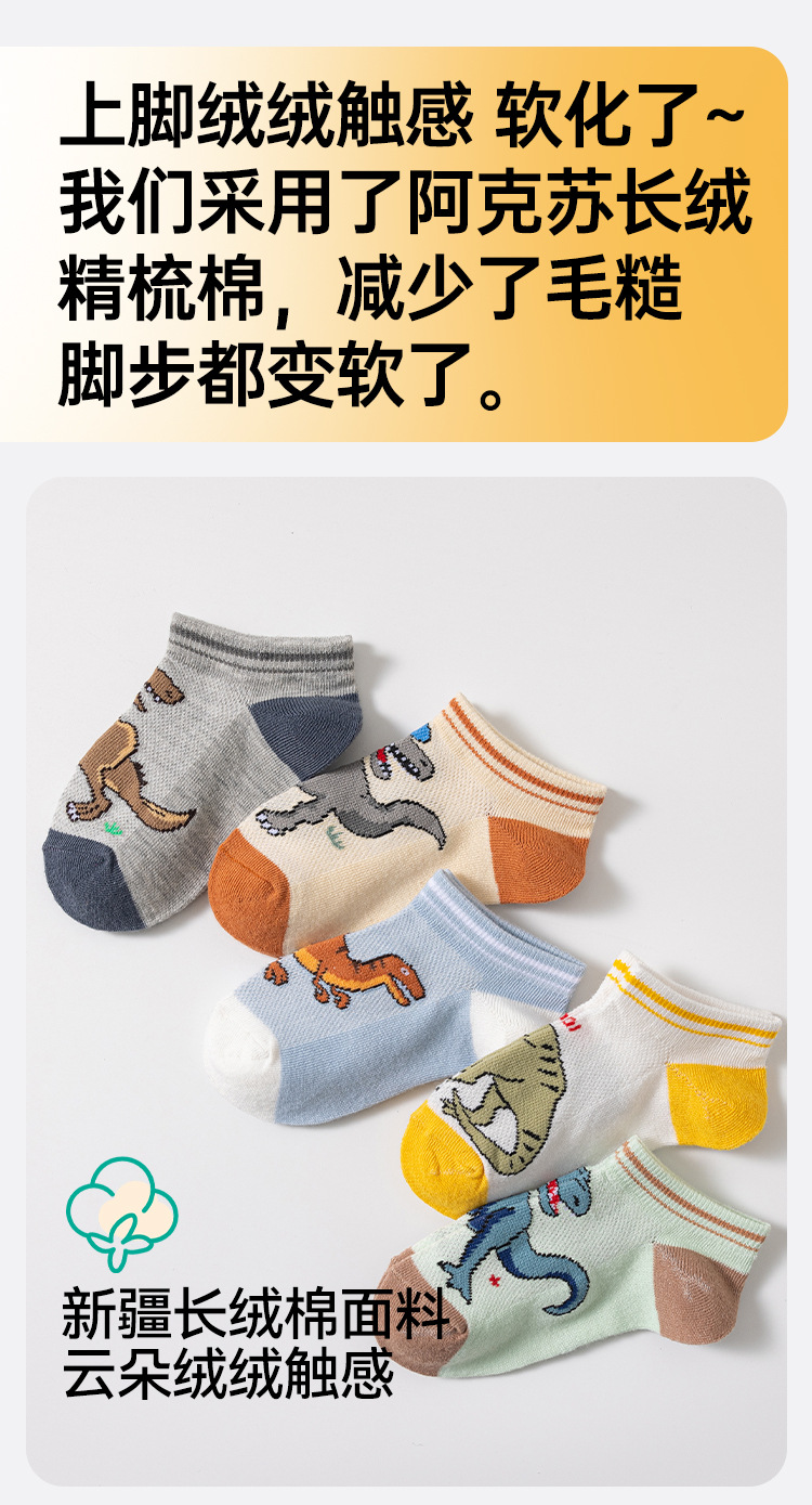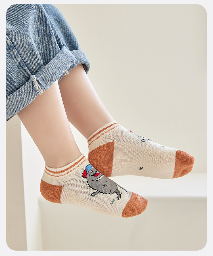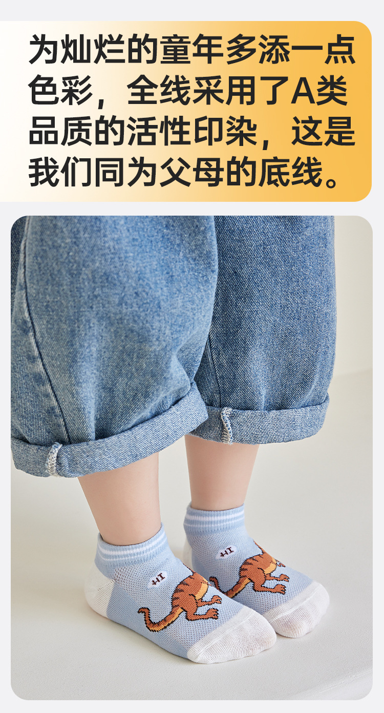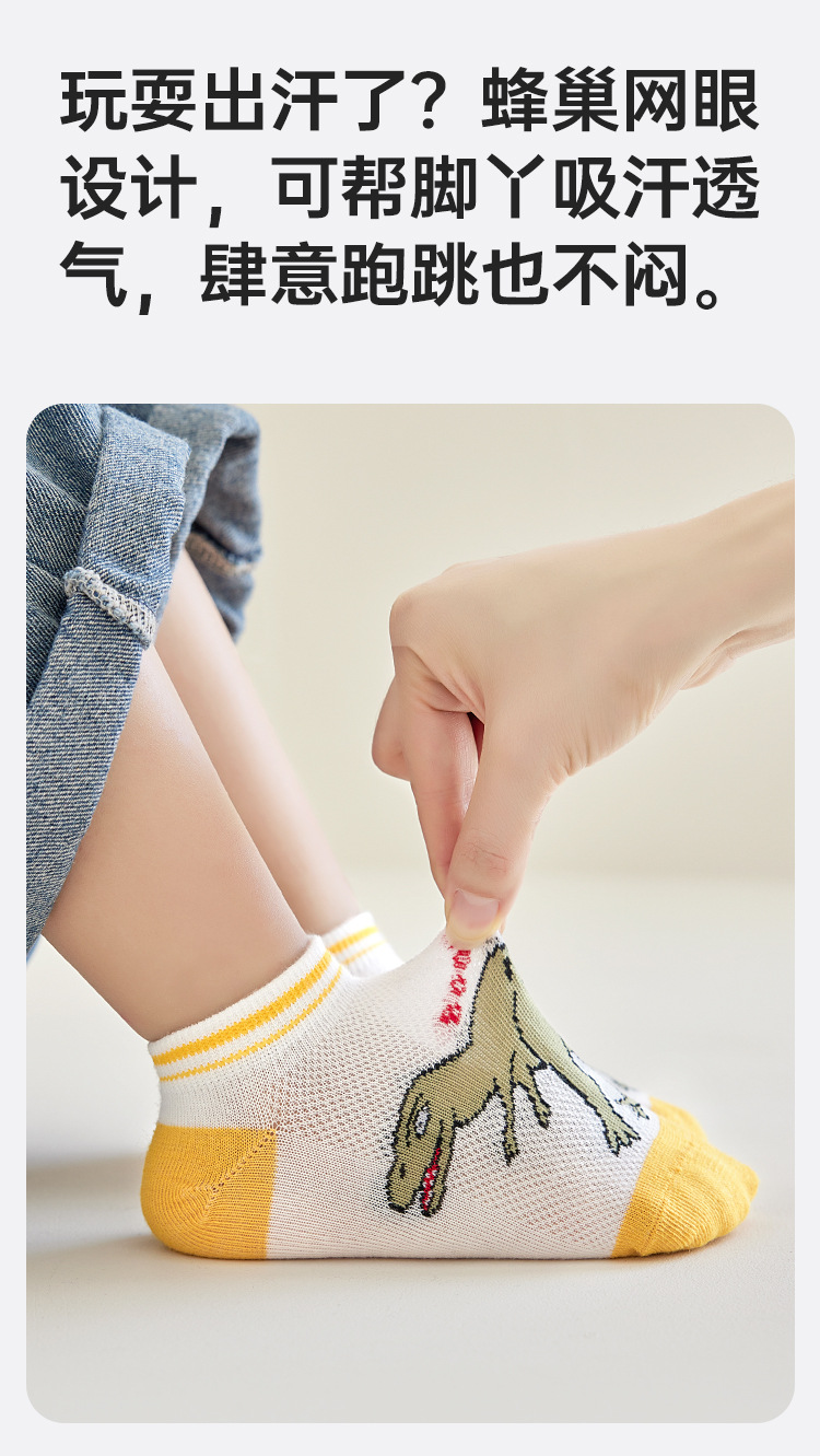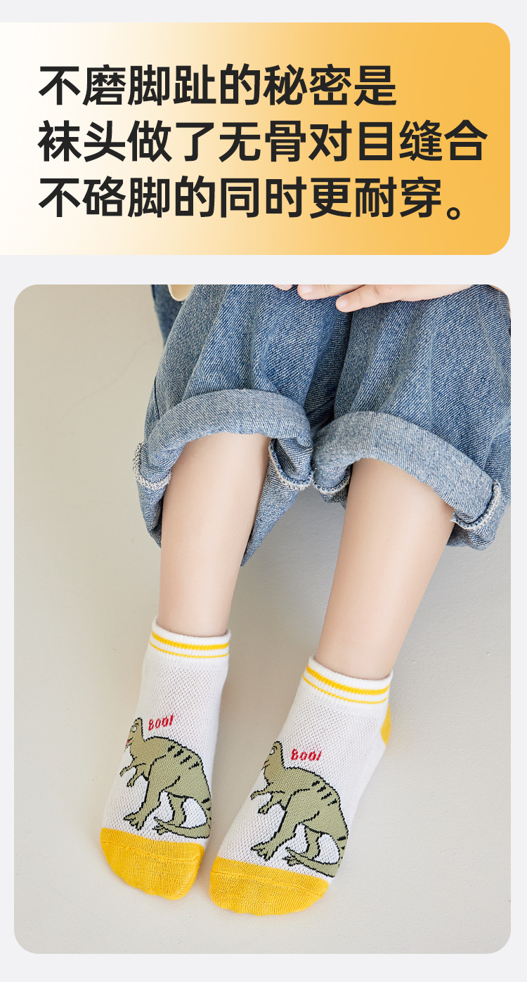 어린이 양말 봄과 여름 메쉬 얇은 만화 공룡 보트 양말 소년과 학생들을위한 통기성 트렌디 한 양말 도매스토어 가기