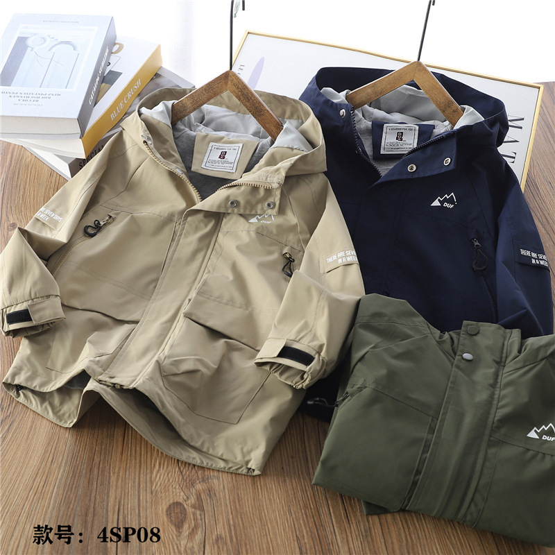원피스 배달 대외 무역 아동복 봄 새로운 소년 소녀 단색 캐주얼 지퍼 카디건 재킷 더블 레이어 후드 중간 길이