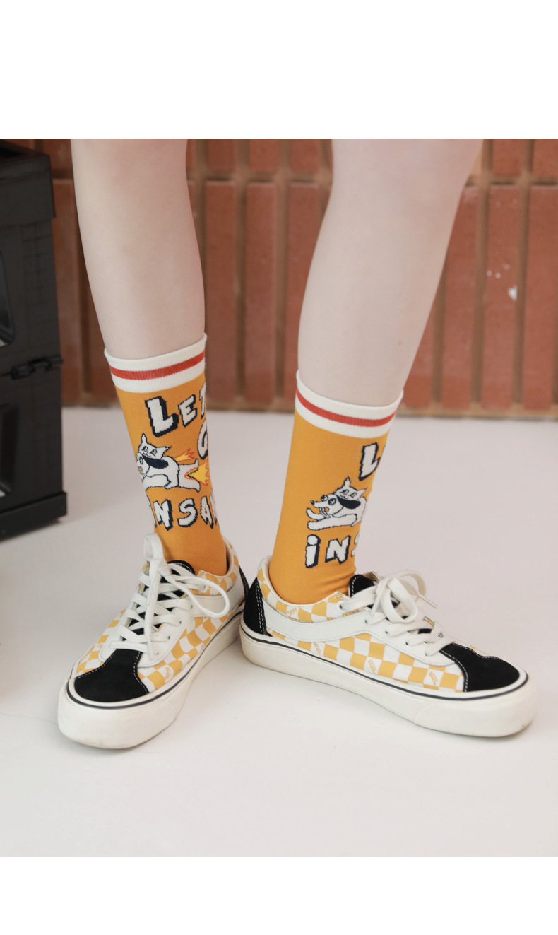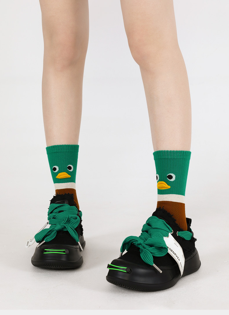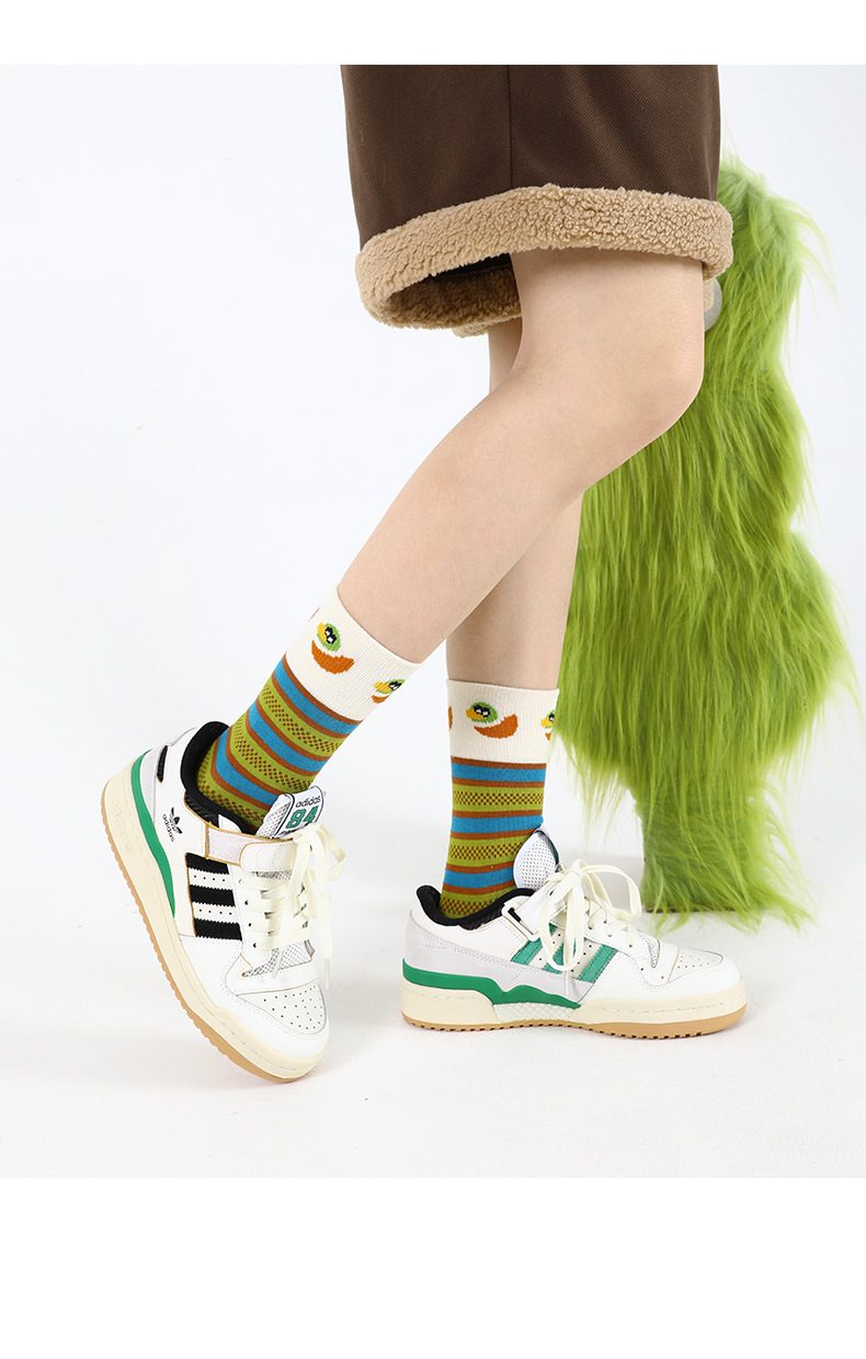 새로운 만화 일러스트 오리 양말 여성용 봄 여름 브랜드 귀여운 레트로 트렌디 커플용 짧은 양말 중간 길이 양말 남성용스토어 가기