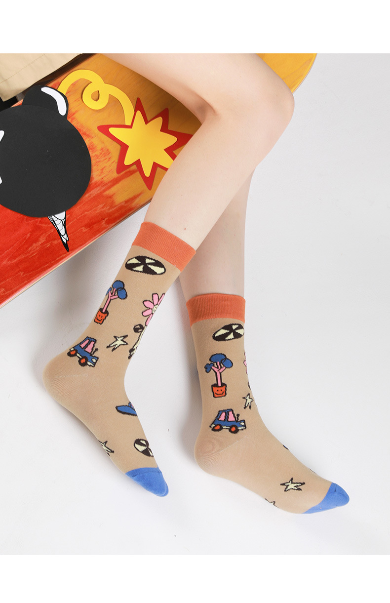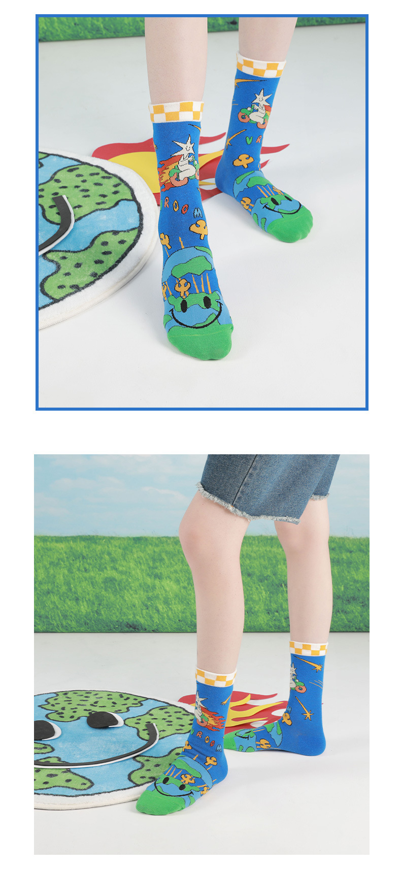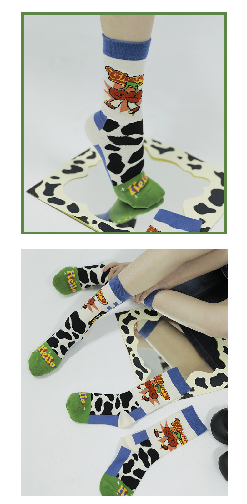 새로운 만화 일러스트 오리 양말 여성용 봄 여름 브랜드 귀여운 레트로 트렌디 커플용 짧은 양말 중간 길이 양말 남성용스토어 가기