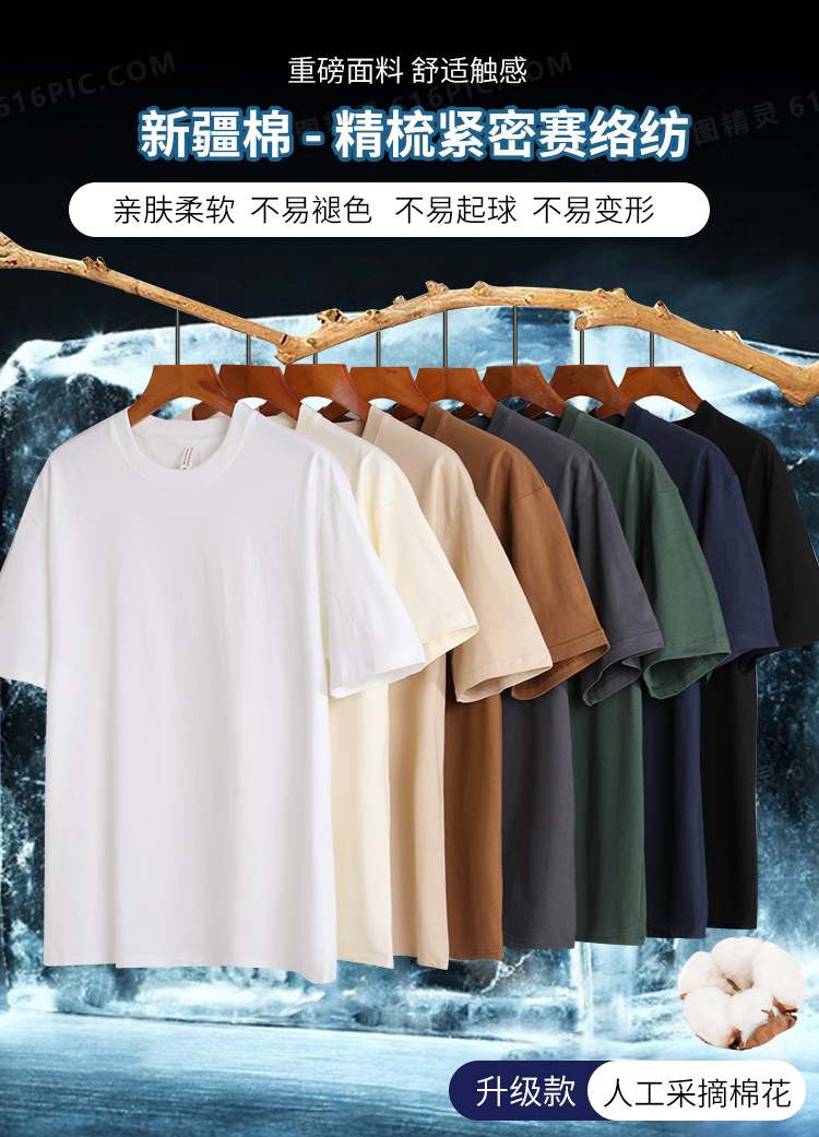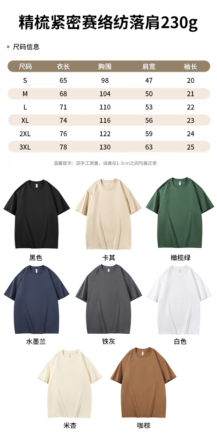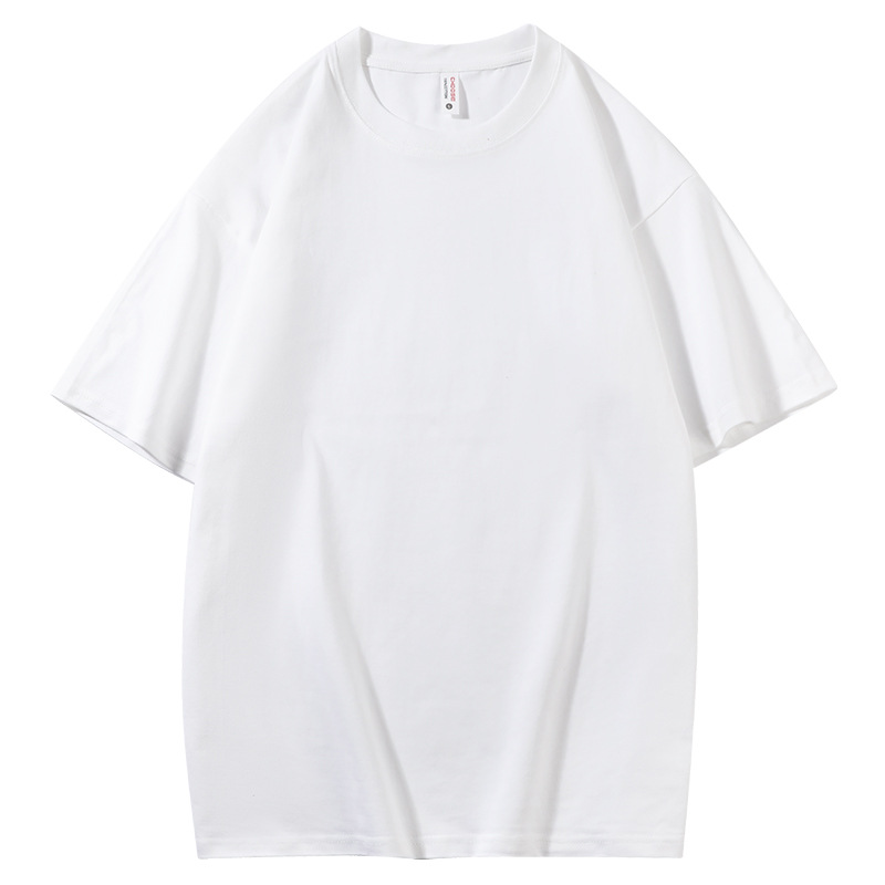 230g 빗질 타이트 시로 스피닝 드롭 숄더 라운드 넥 티셔츠 남성과 여성 패션 브랜드 단색 짧은 소매 바닥 탑 도매스토어 가기