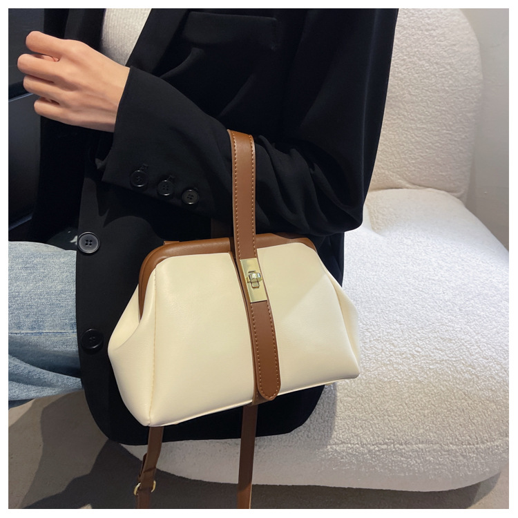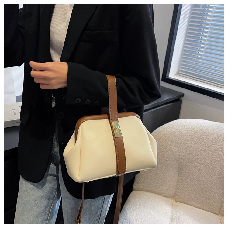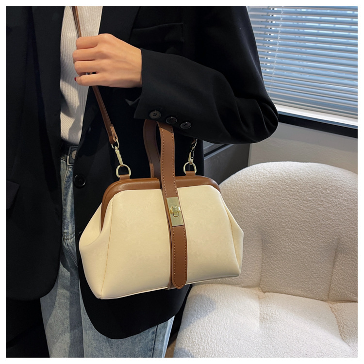 배색 핸드백 여성용 2026 신상 트렌디 패션 레트로 클립백 고급 질감 세련된 다용도 크로스백