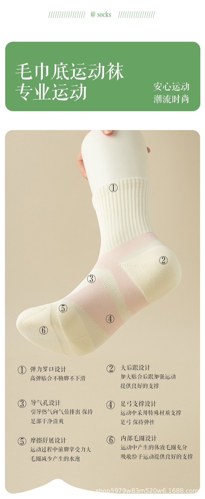 전문 스포츠 양말 여성용 중간 길이 타월 바닥 땀 흡수 통기성 탈취 피트니스 러닝 양말 배드민턴 테니스 양말스토어 가기