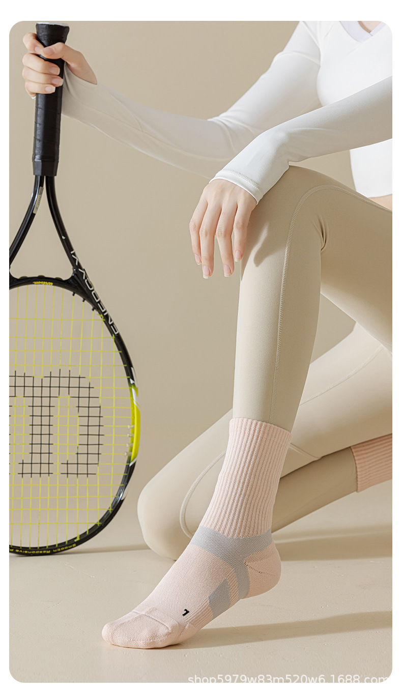 전문 스포츠 양말 여성용 중간 길이 타월 바닥 땀 흡수 통기성 탈취 피트니스 러닝 양말 배드민턴 테니스 양말