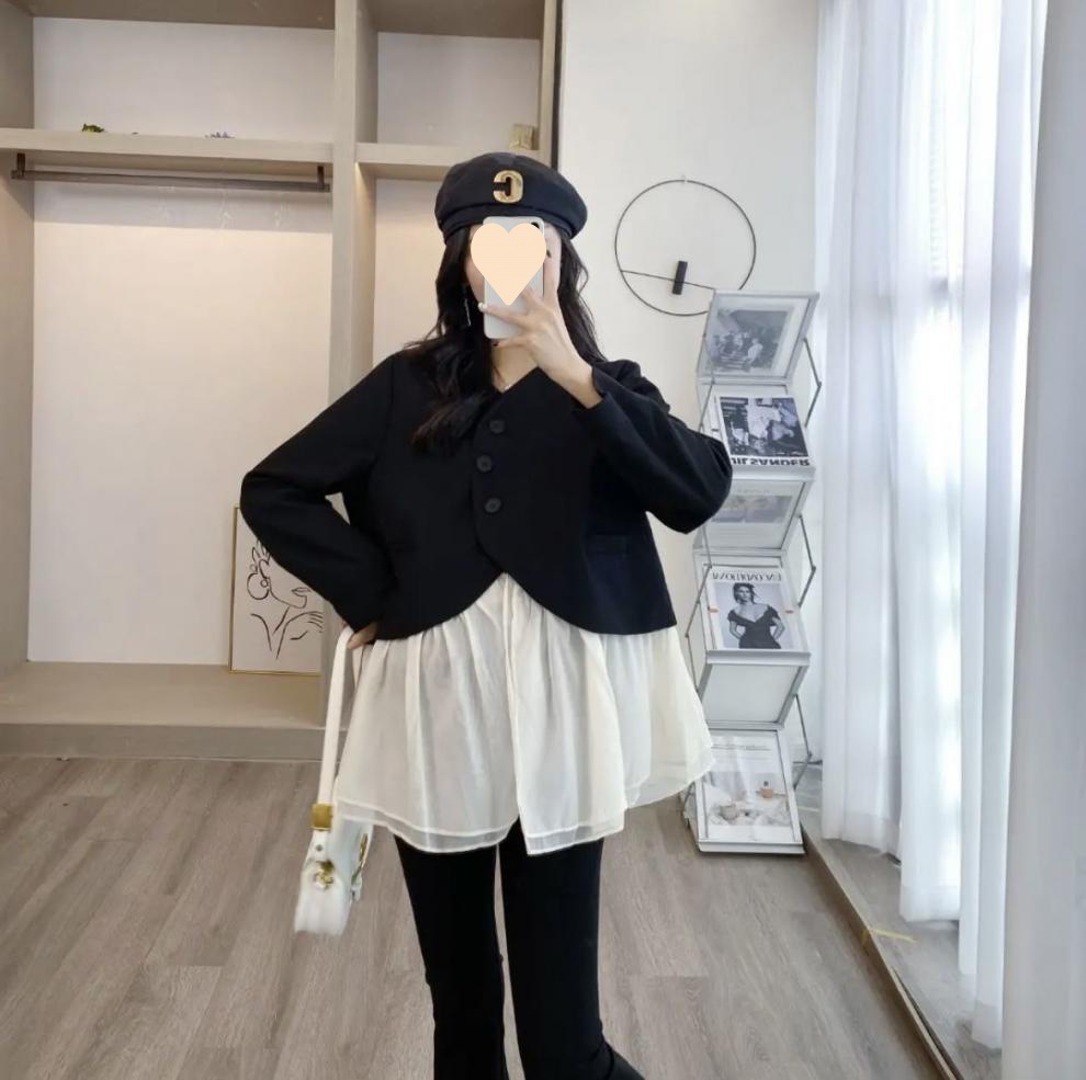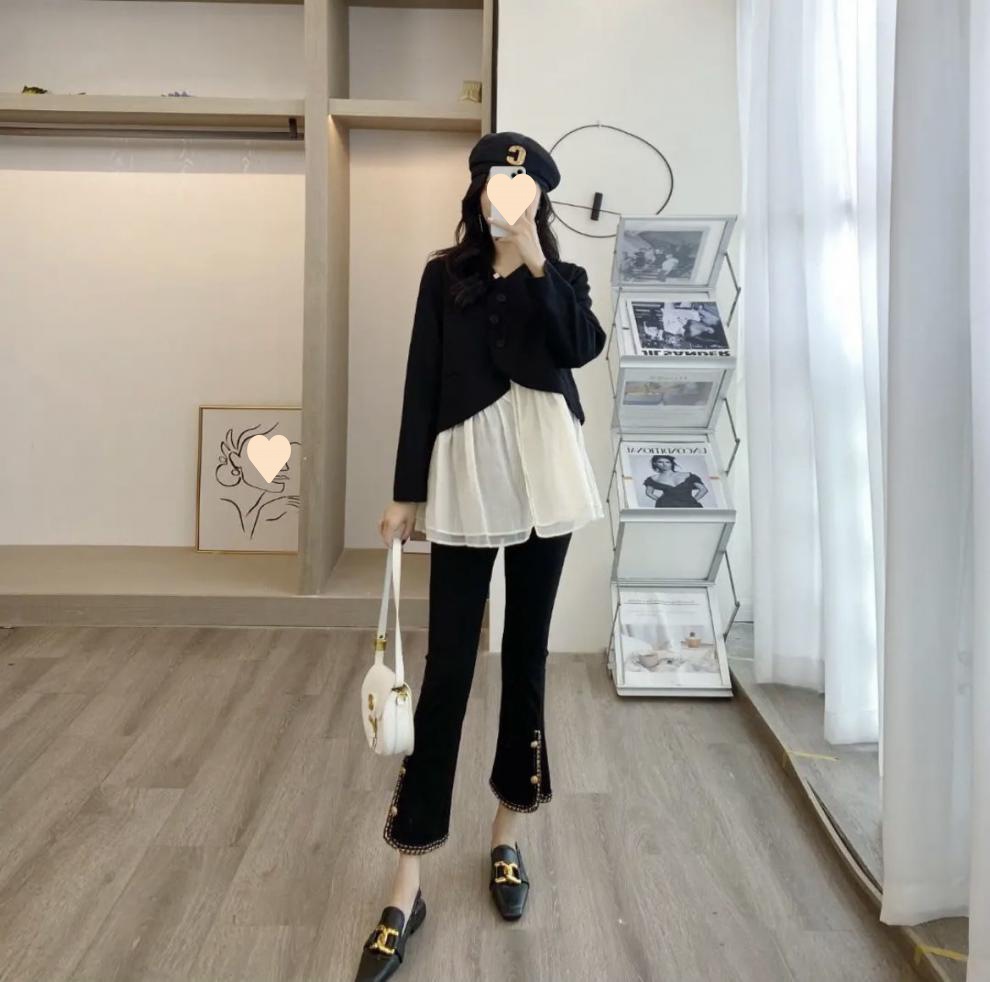 출산 가을 원피스 세트 인터넷 유명 패션 세트 인형 셔츠 느슨한 캐주얼 탑 임산부 봄과 가을 투피스 세트스토어 가기
