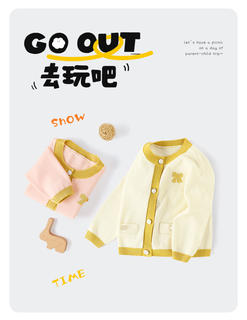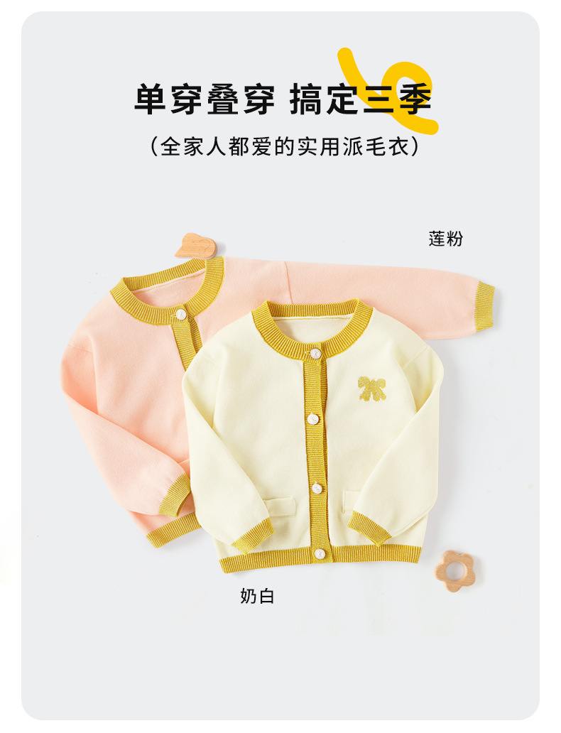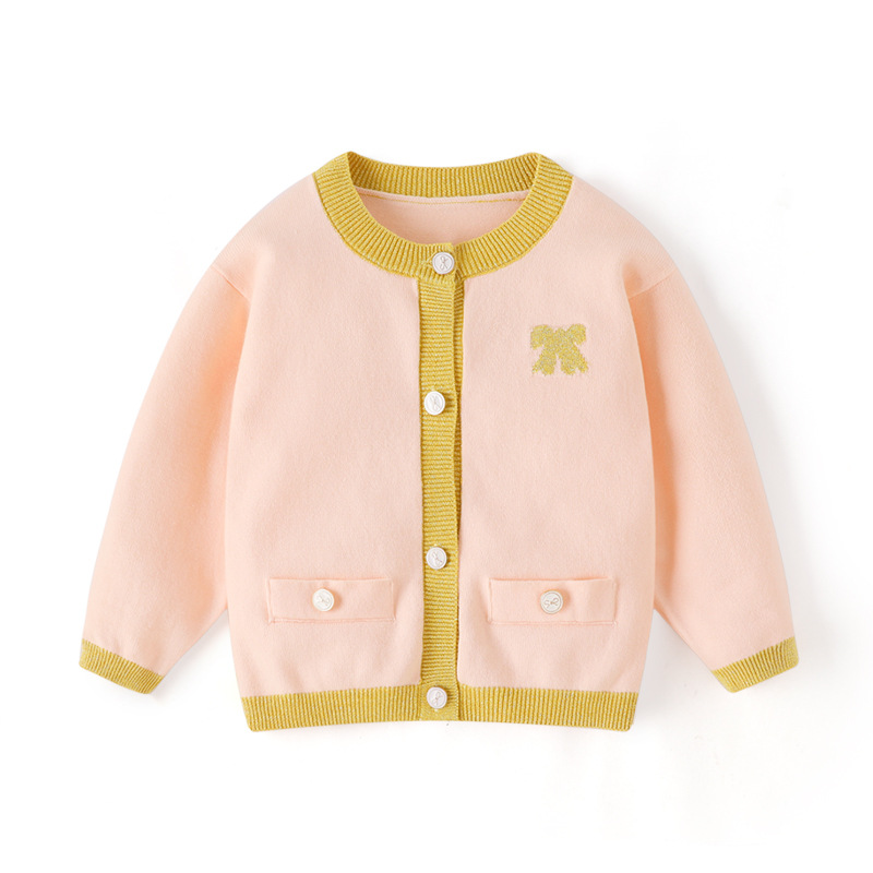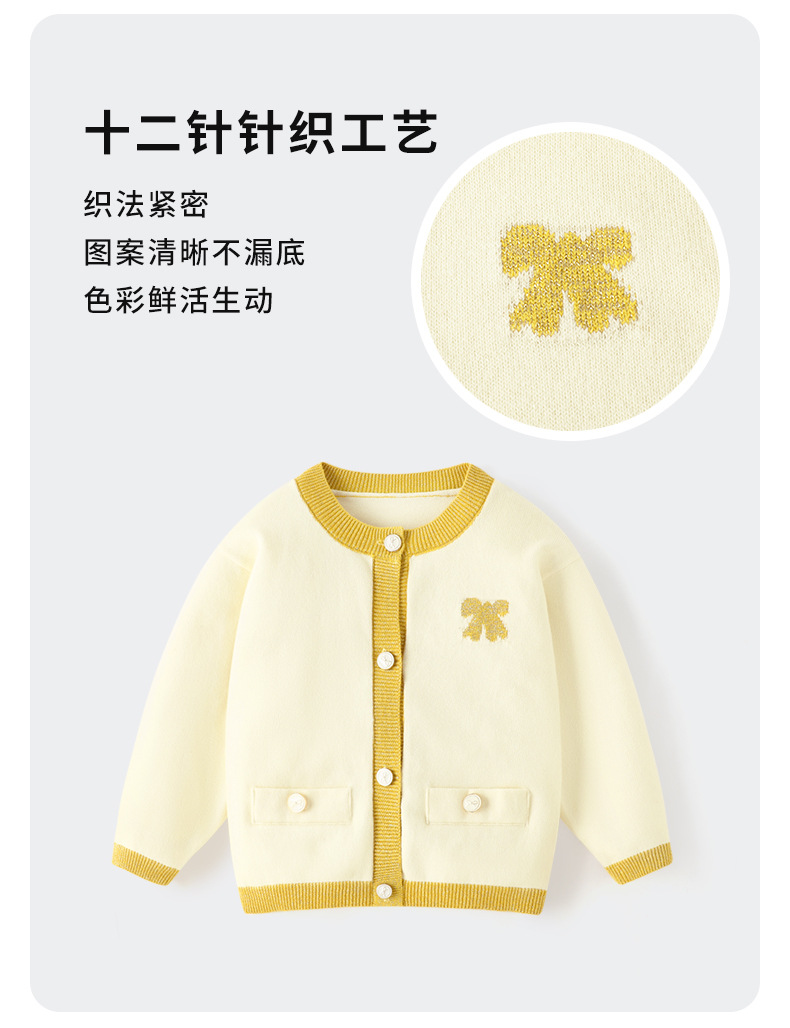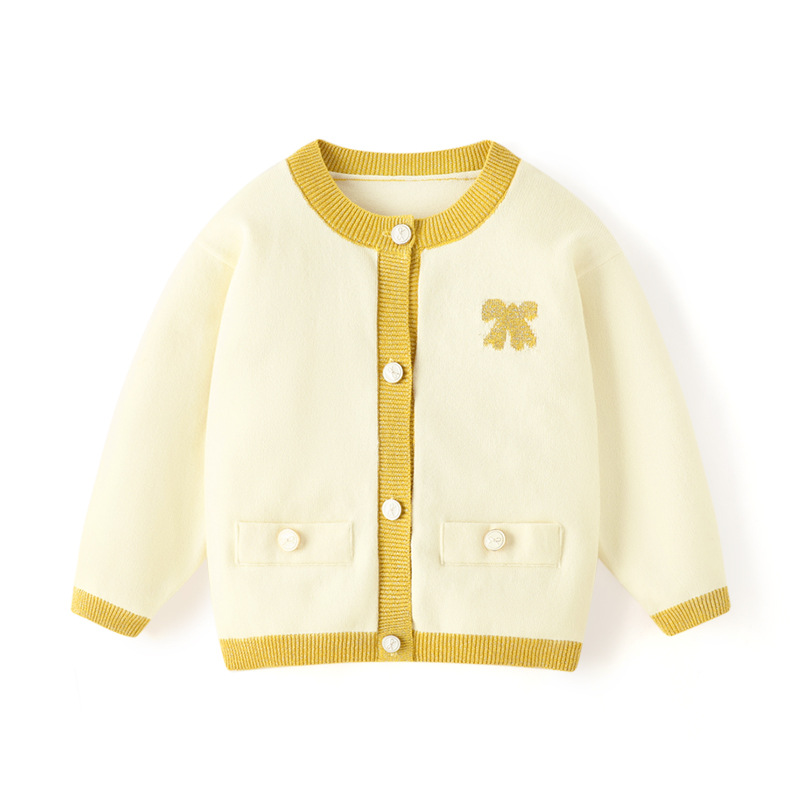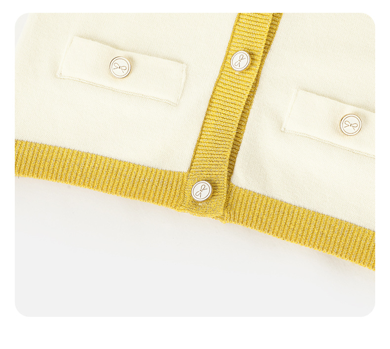 2024 봄 소녀 니트웨어 소녀 골드 실크 활 샤넬 스타일 카디건 달콤한 단색 클래스 면 스웨터스토어 가기