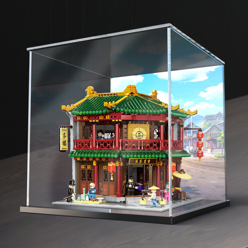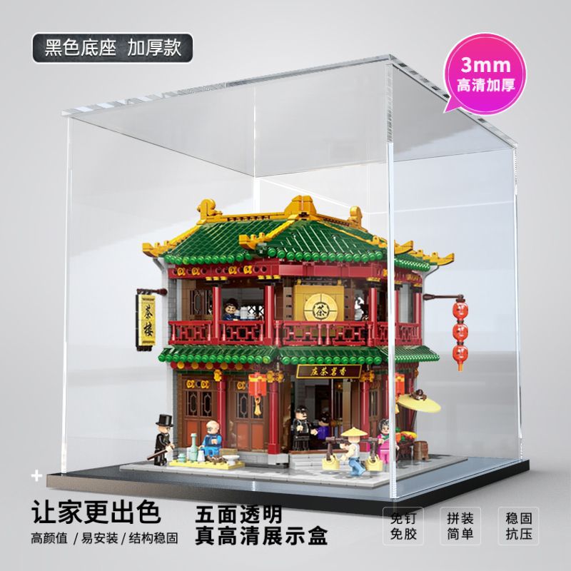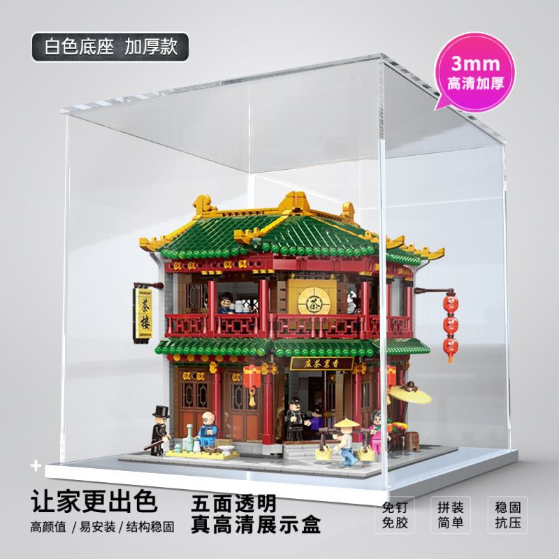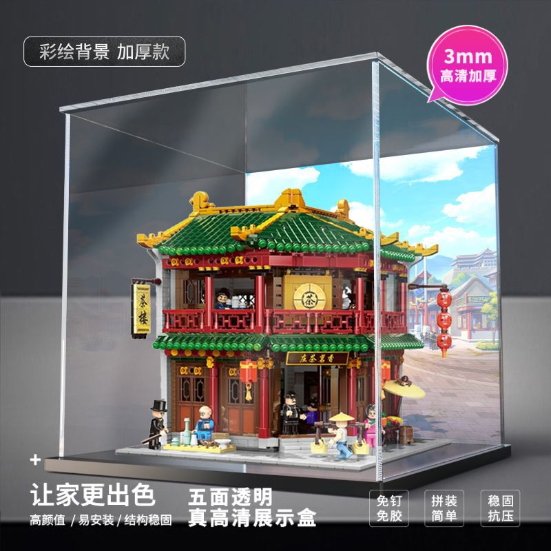 중국 거리 장면 Xiangming 차 집 모델 장난감 건물 블록 투명 먼지 커버 아크릴 디스플레이 상자 저장 상자