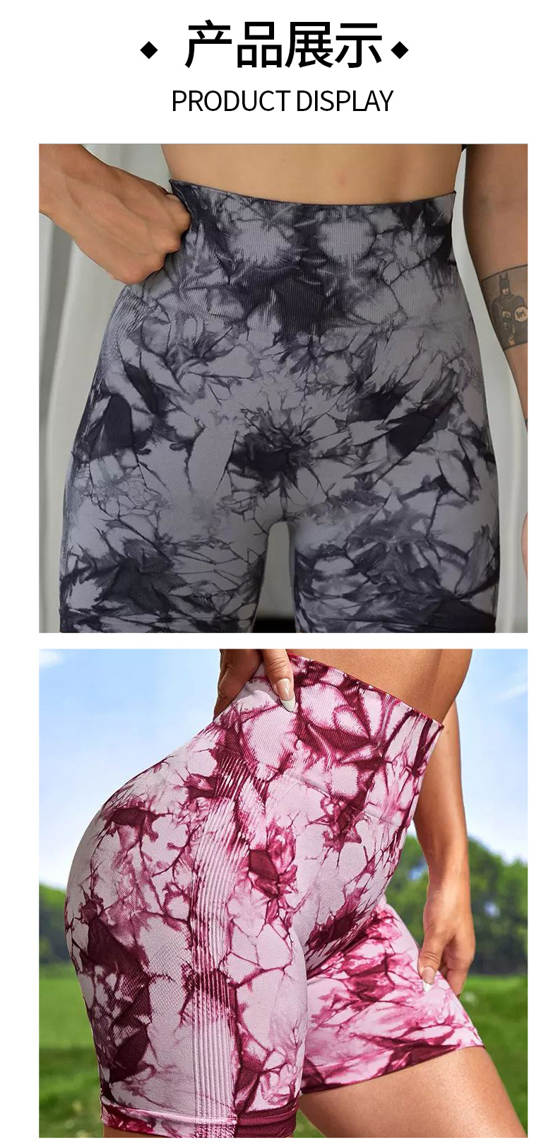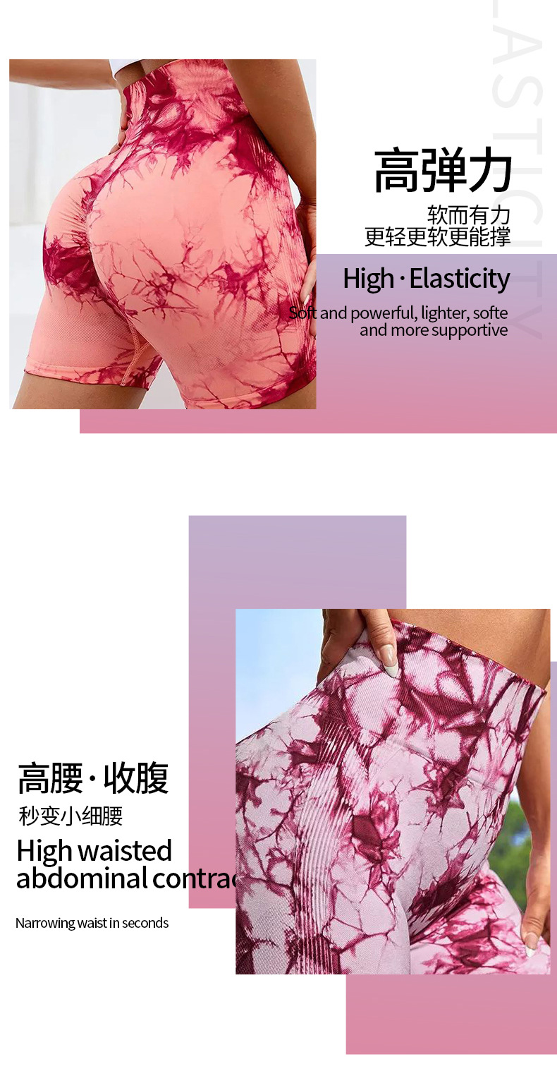 여름 유럽과 미국의 타이 염색 3 점 피트니스 바지 여성 하이 허리 엉덩이 리프팅 타이트한 스포츠 달리기 복숭아 배꼽 계약 요가 반바지스토어 가기