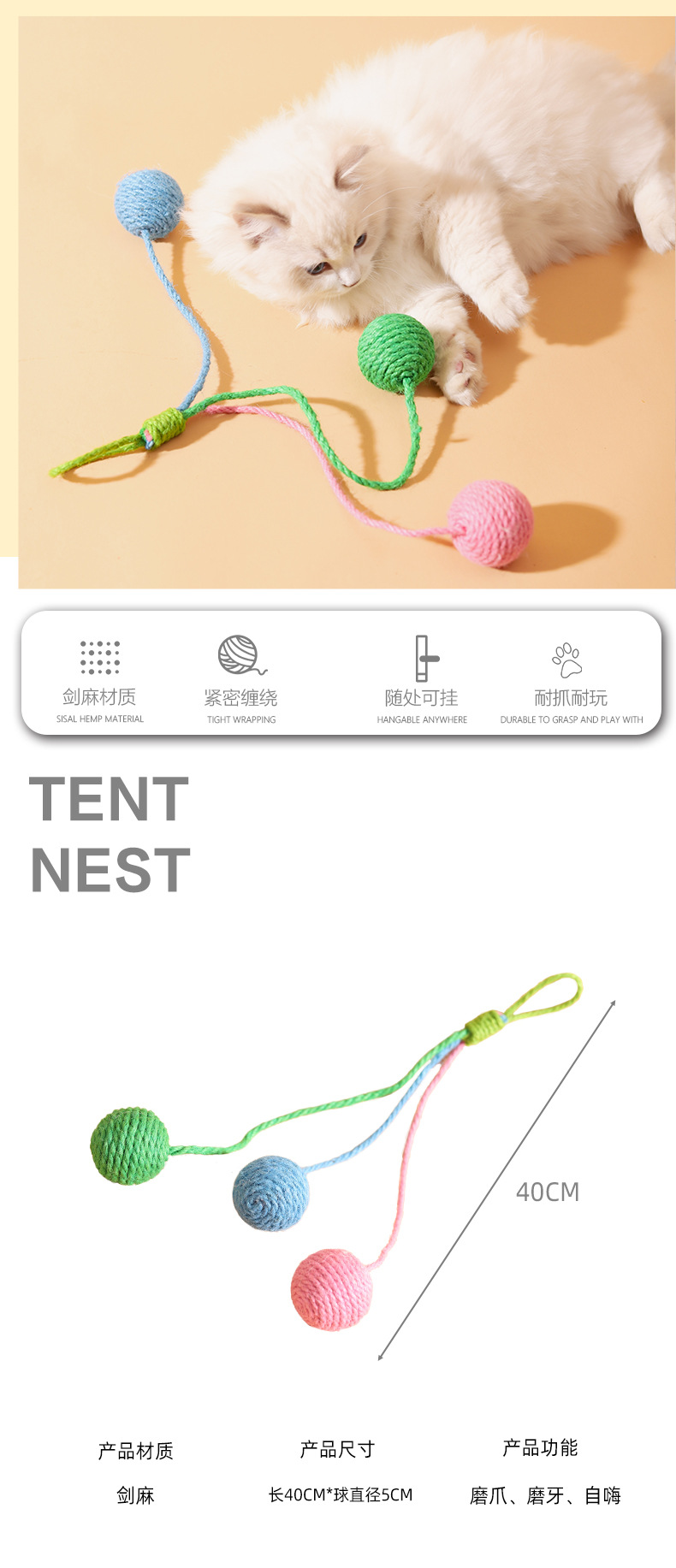 공장 직접 공급 대마 로프 볼은 칩 한입 방지 스크래치 방지 교수형 고양이 장난감 공 걸이 케이지 연삭 발톱 재미있는 고양이 스틱을 떨어 뜨리지 않습니다.스토어 가기