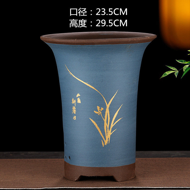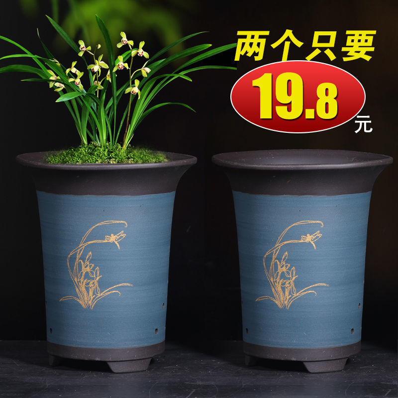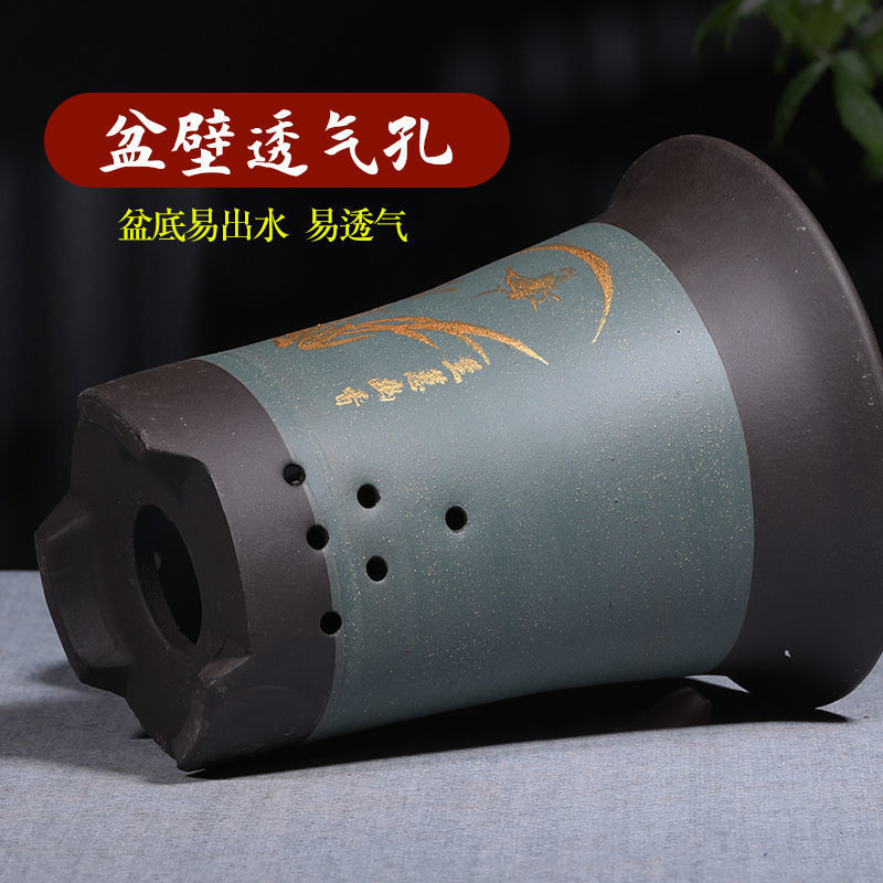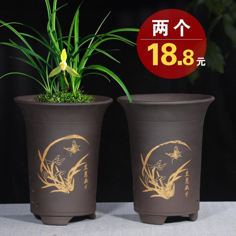 난초 화분 보라색 모래 냄비 이싱 보라색 모래 냄비 세라믹 난초 분지는 트레이 패키지가있는 도매 머리카락을 손상 시켰습니다.스토어 가기