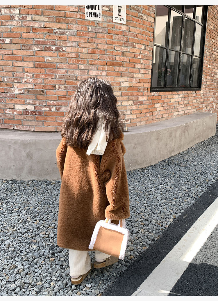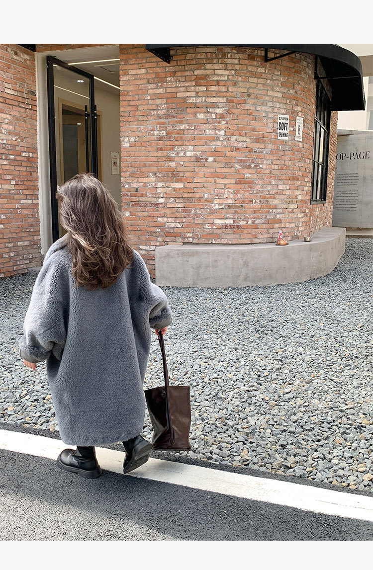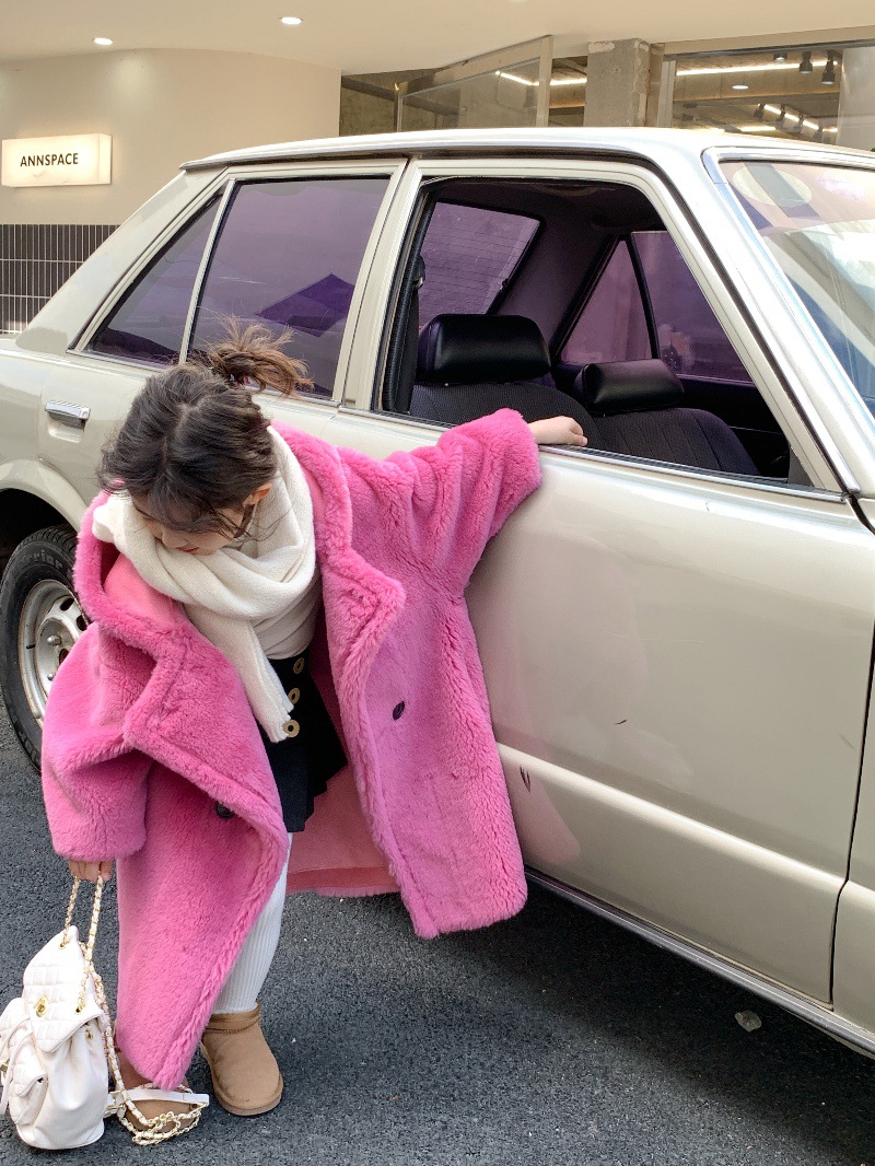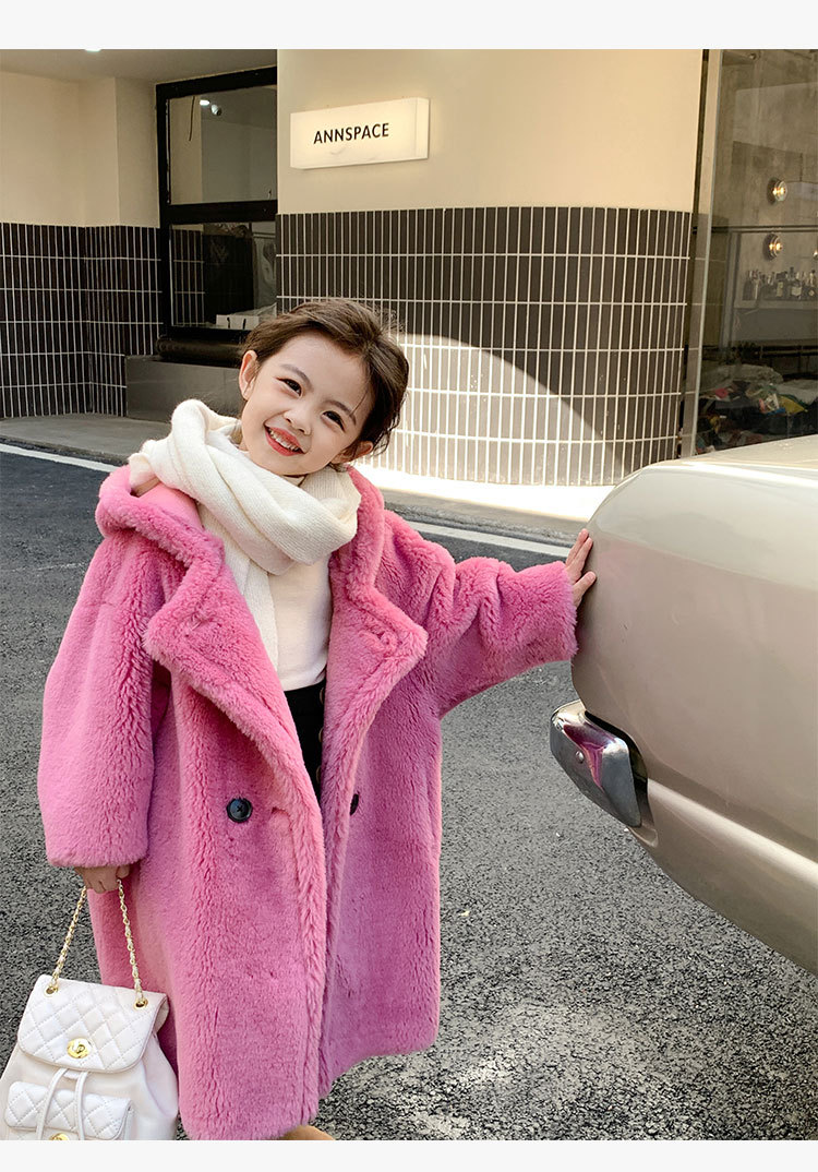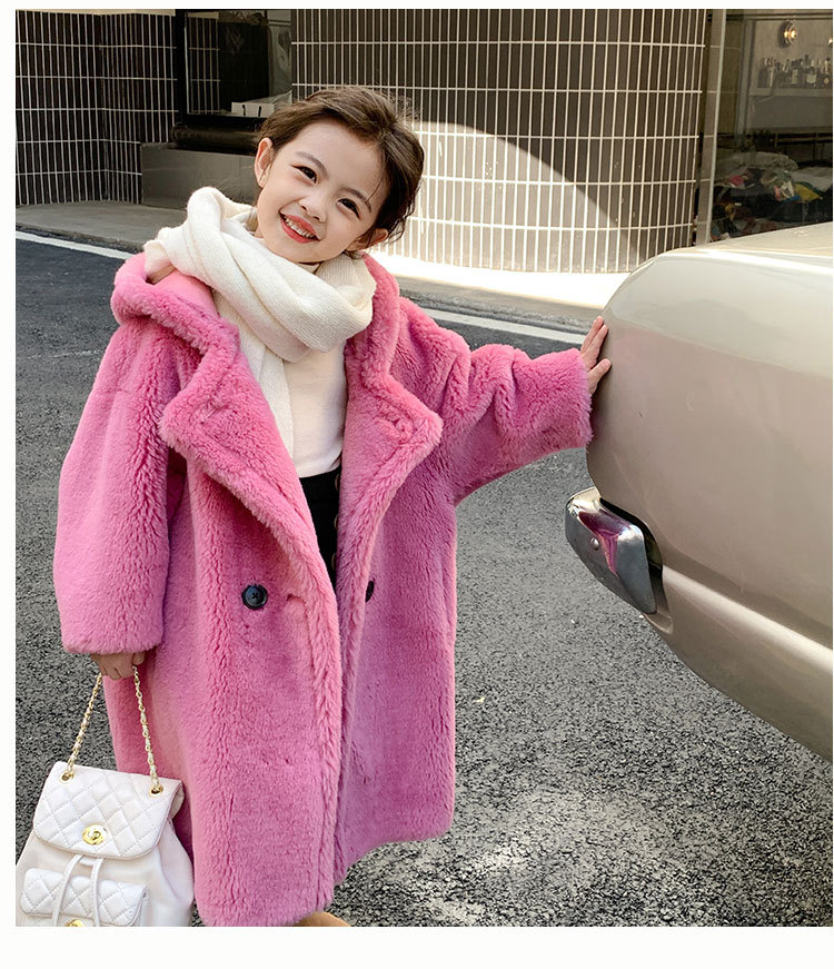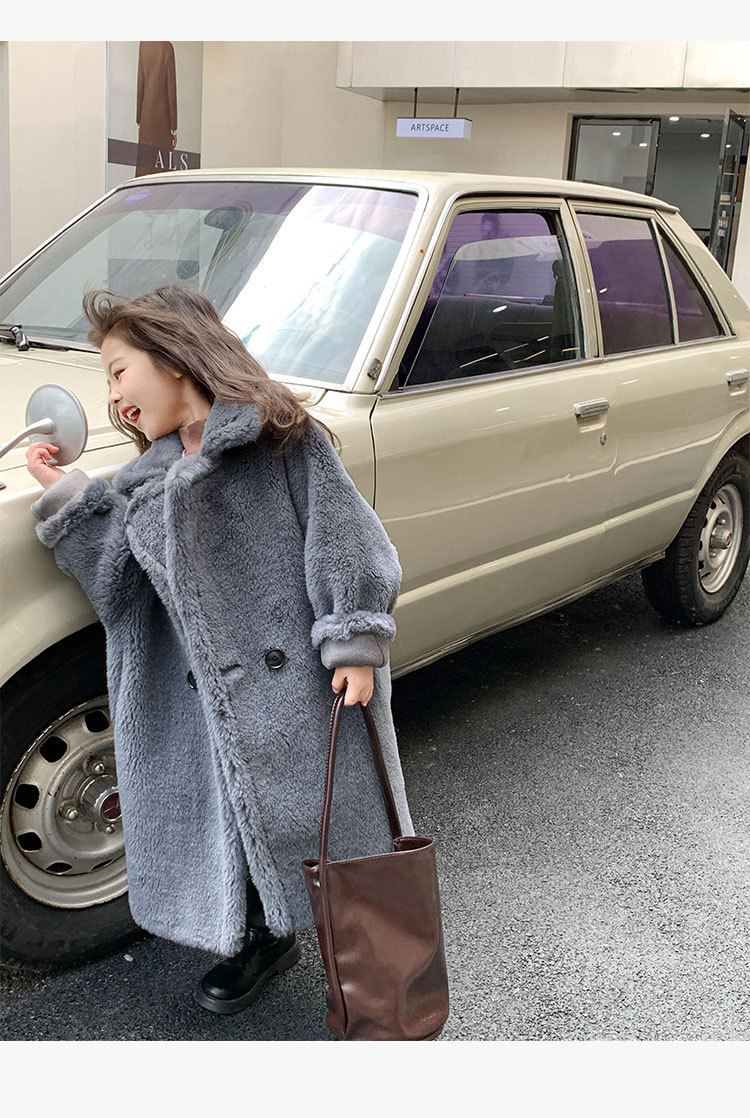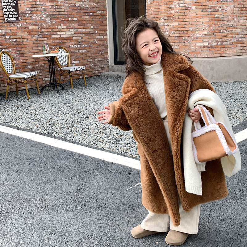 겨울 양모 부모-자식 어린이 테디 베어 코트 걸스 모피 코트 새 양고기 모피 원피스 코트스토어 가기