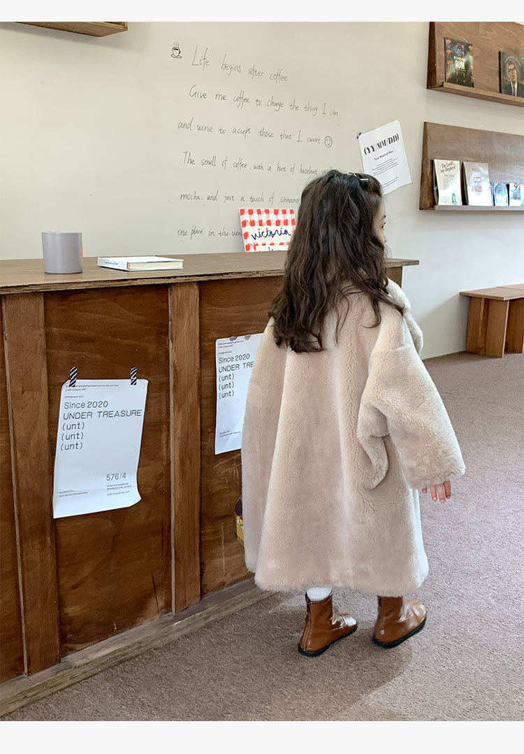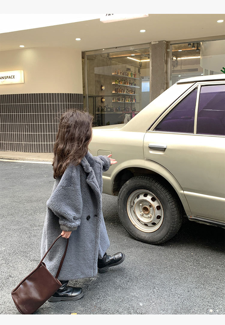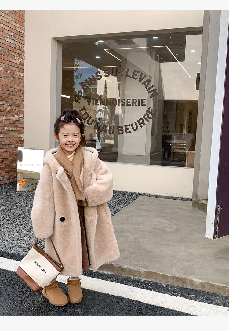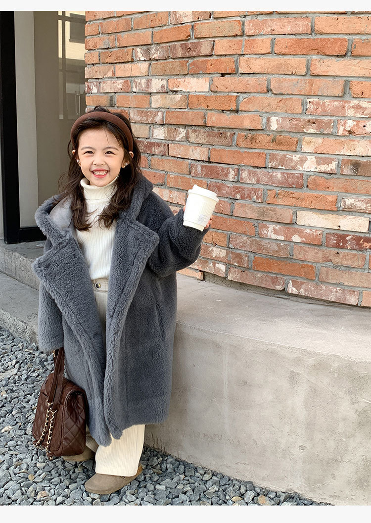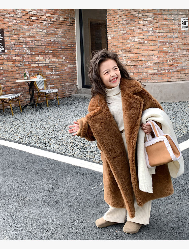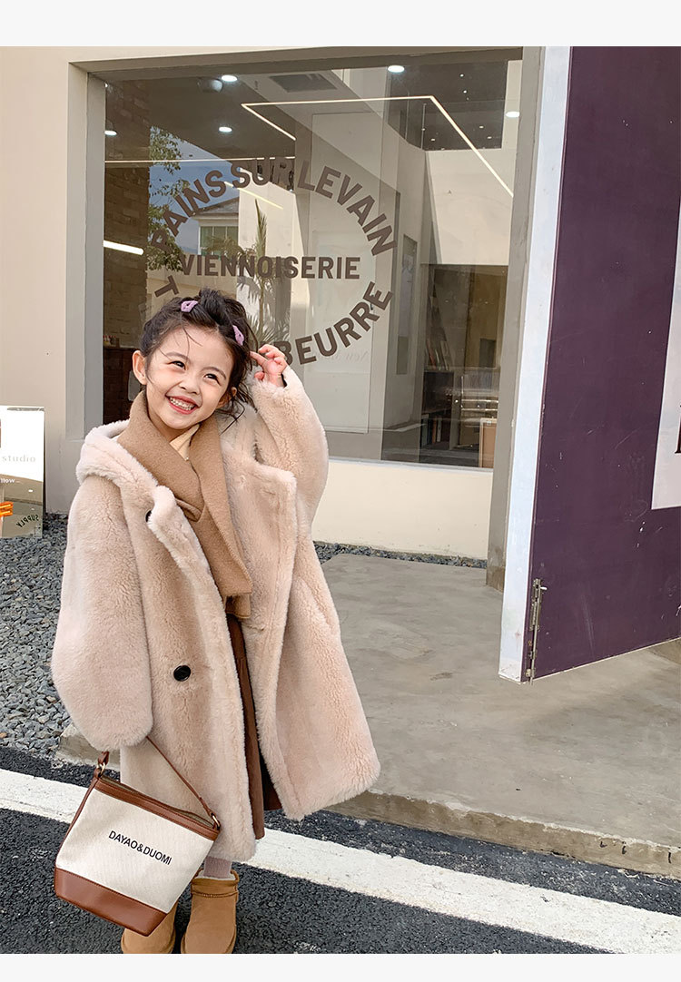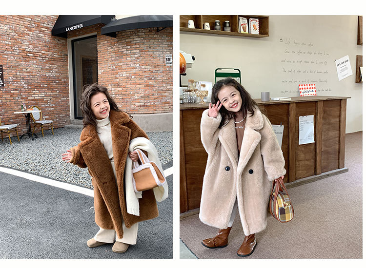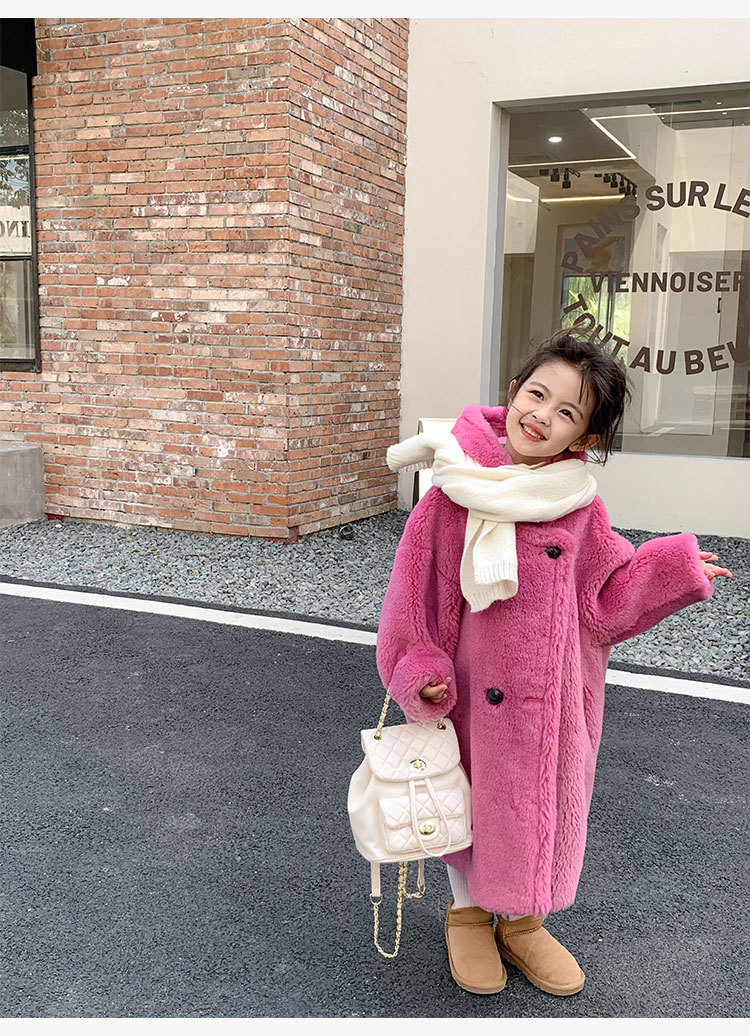 겨울 양모 부모-자식 어린이 테디 베어 코트 걸스 모피 코트 새 양고기 모피 원피스 코트스토어 가기