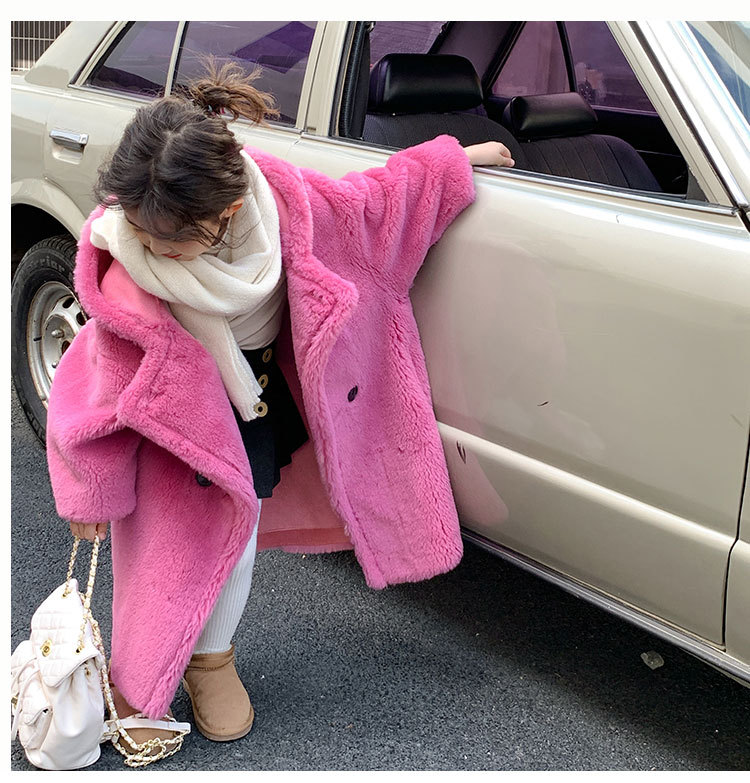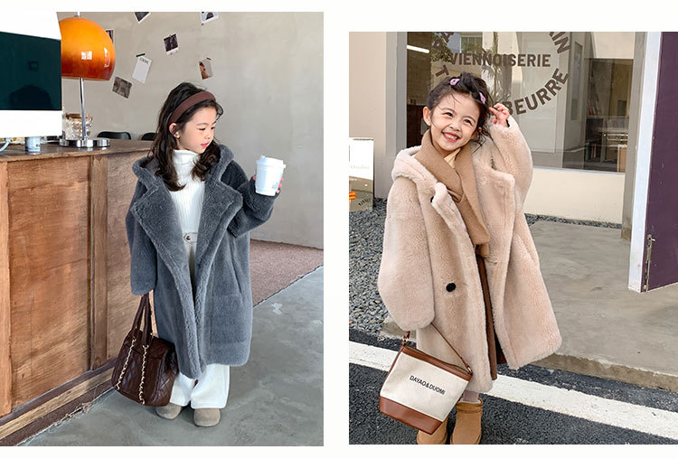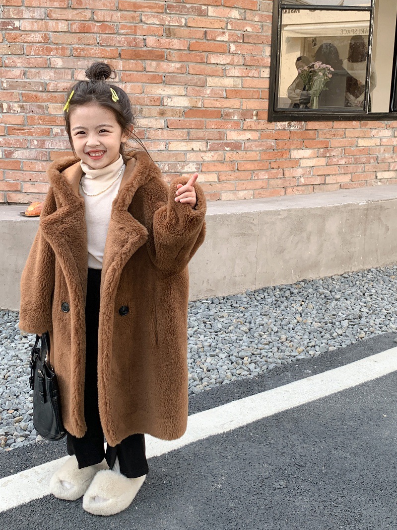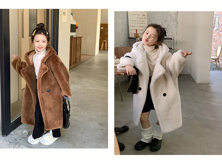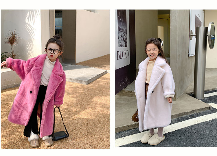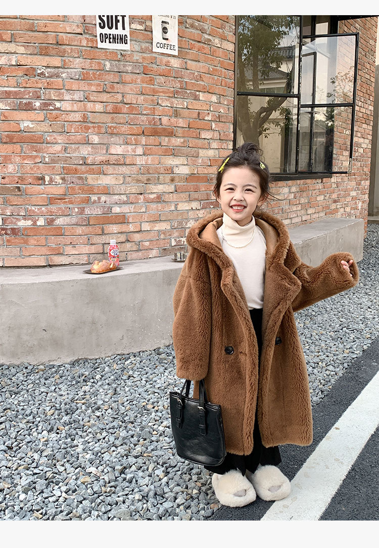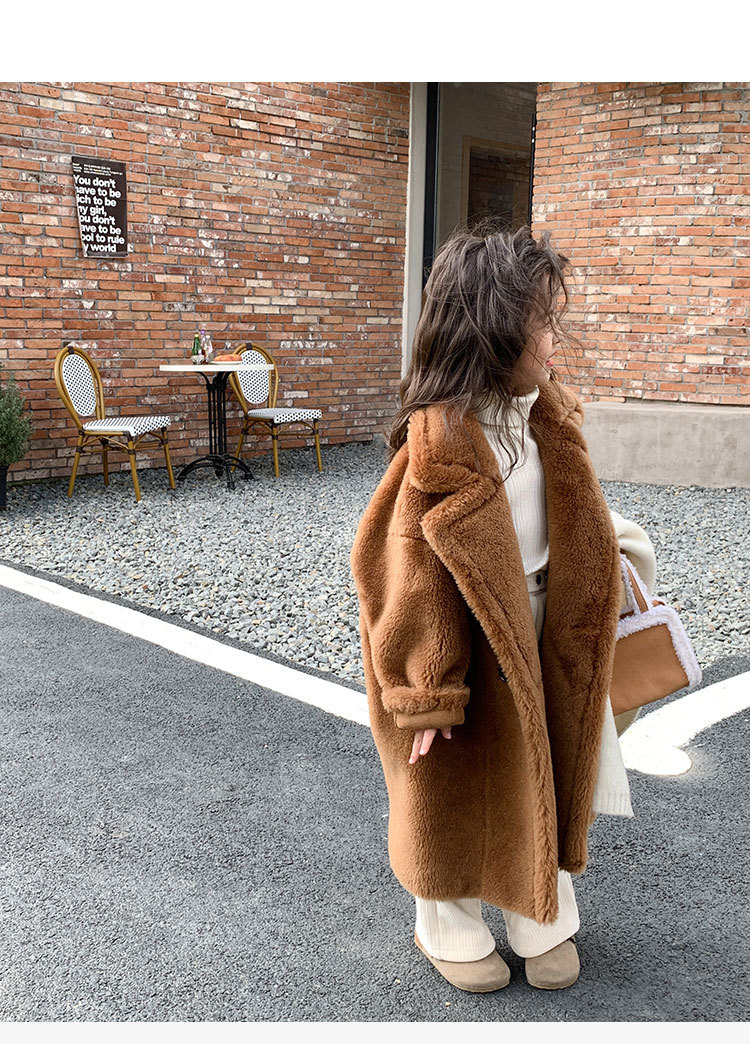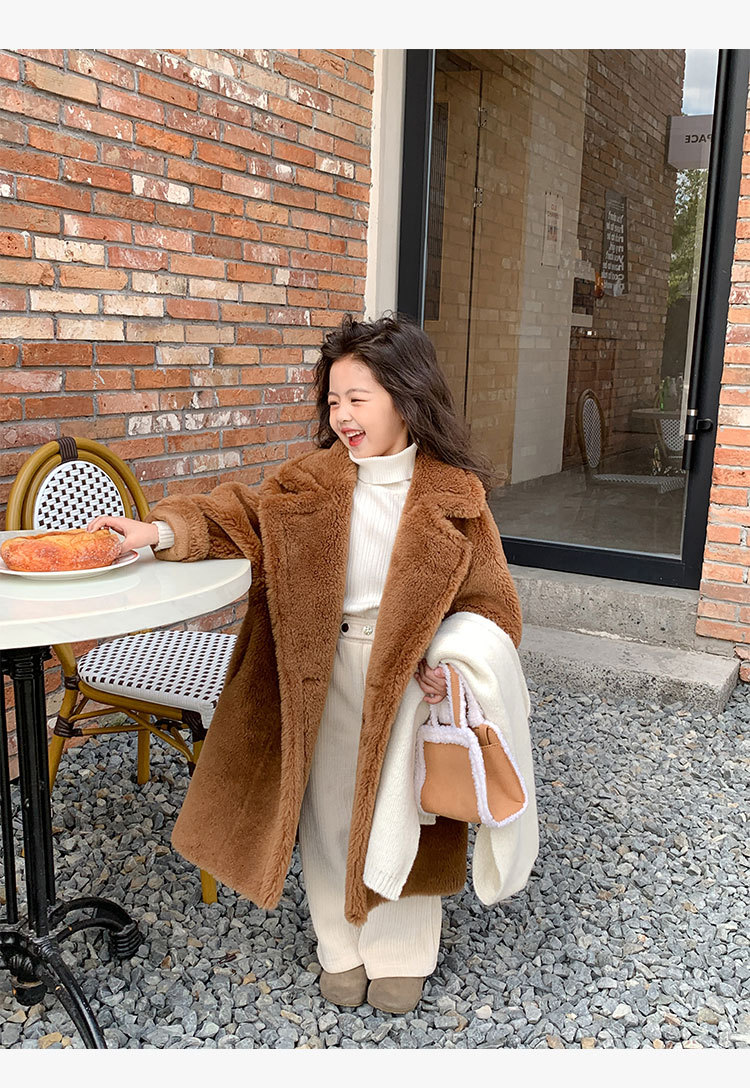 겨울 양모 부모-자식 어린이 테디 베어 코트 걸스 모피 코트 새 양고기 모피 원피스 코트스토어 가기