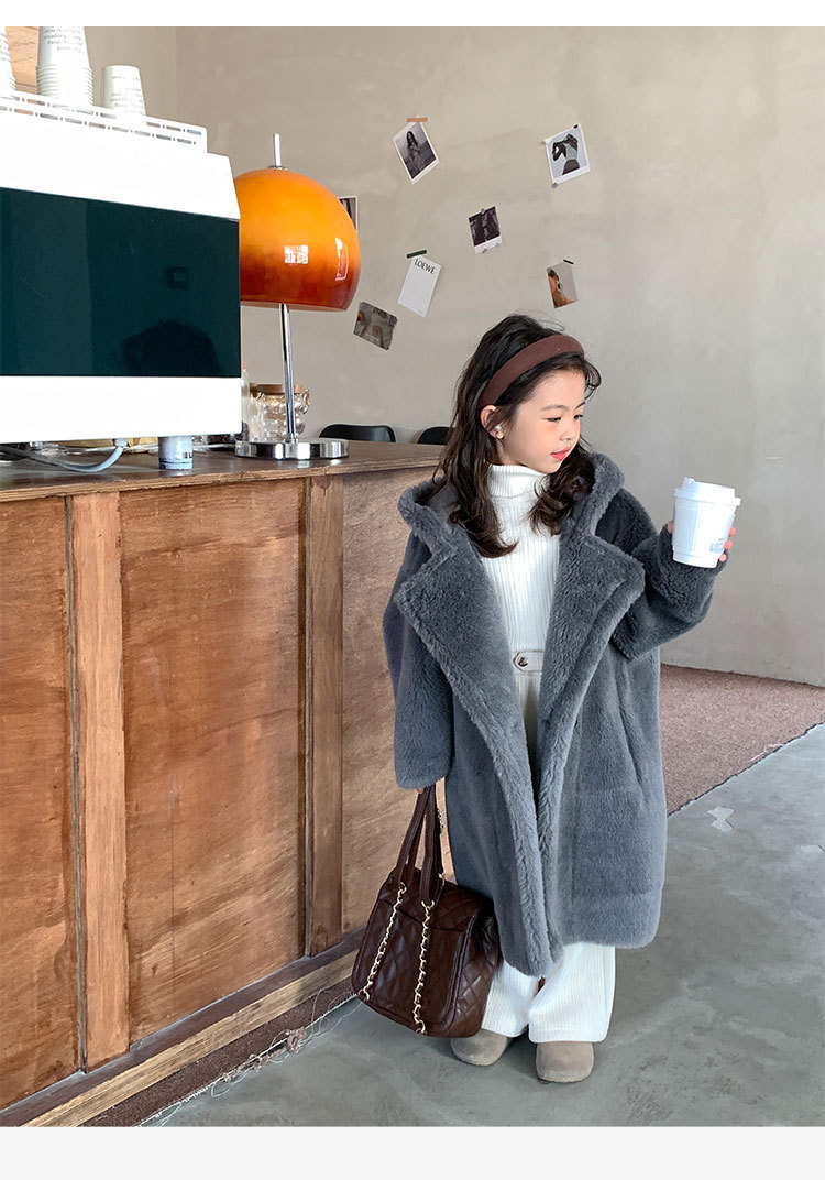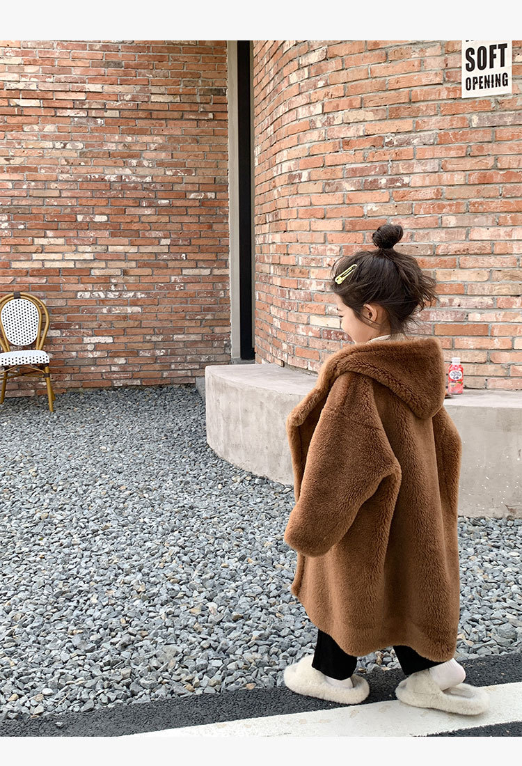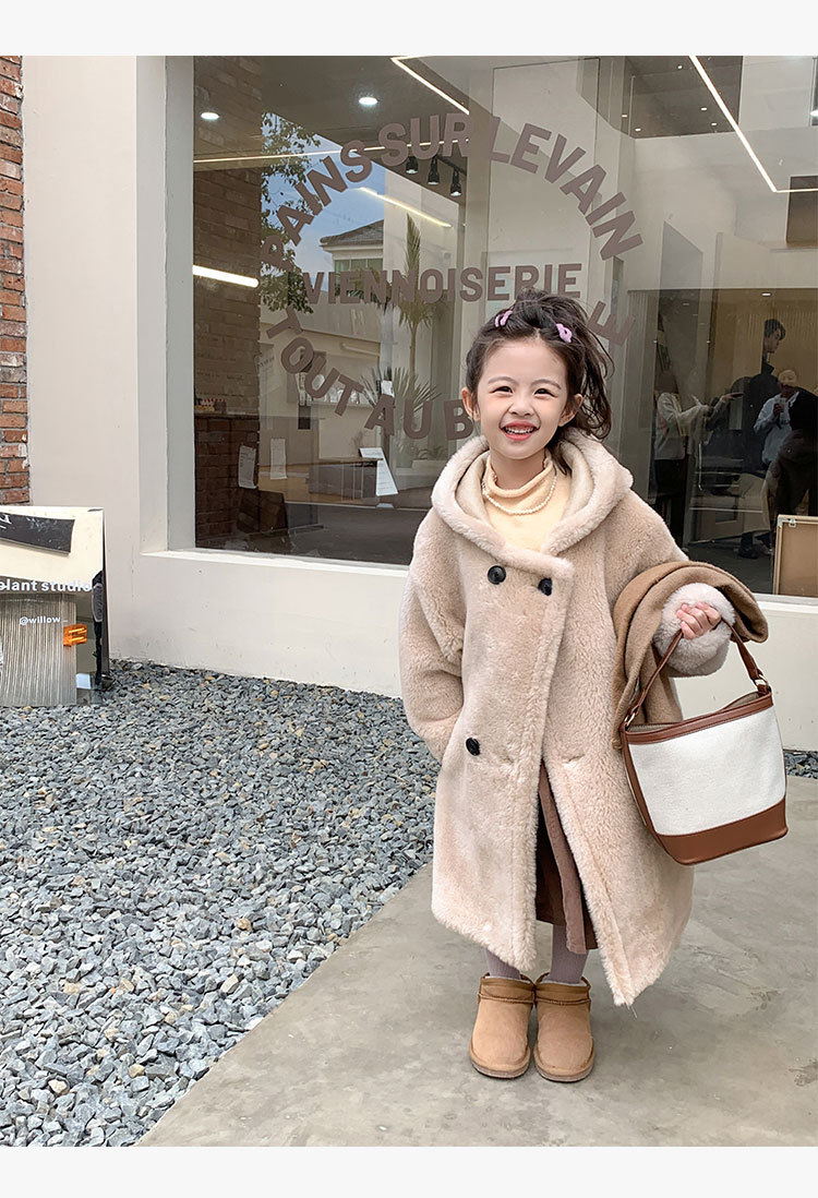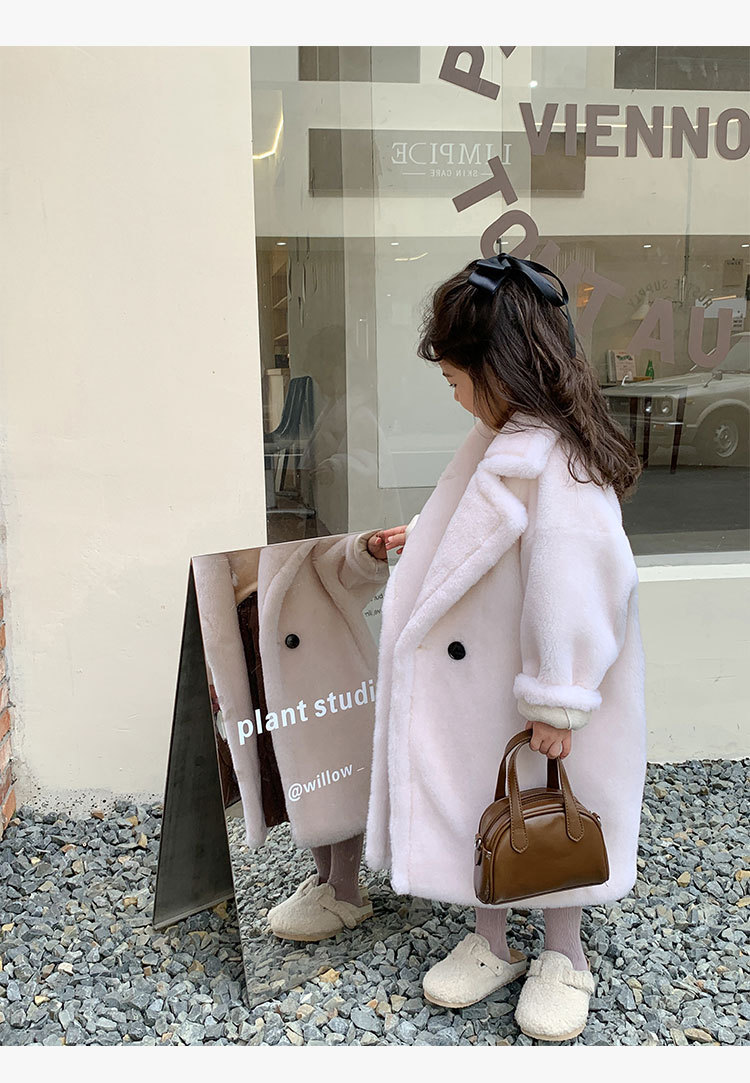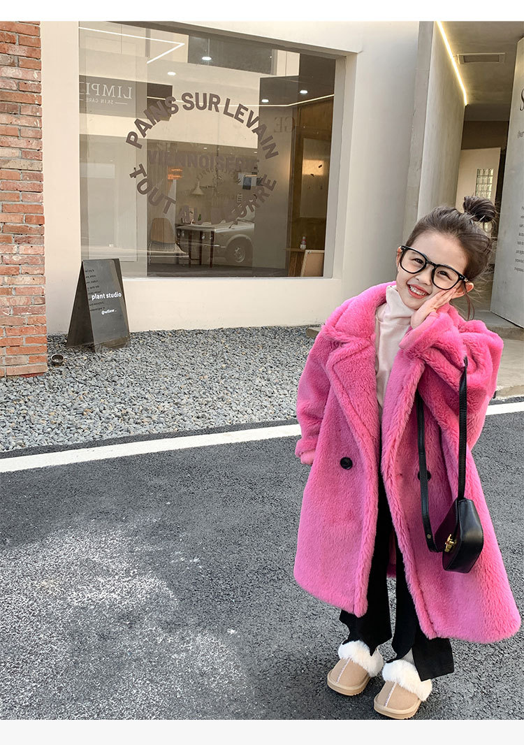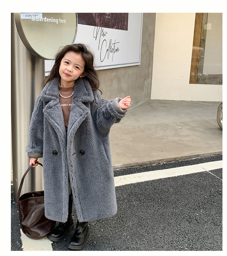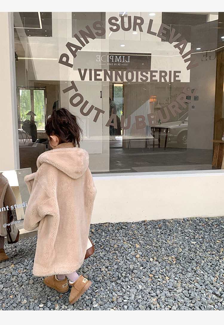 겨울 양모 부모-자식 어린이 테디 베어 코트 걸스 모피 코트 새 양고기 모피 원피스 코트스토어 가기