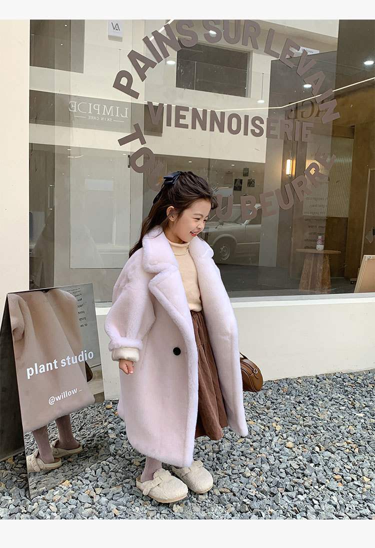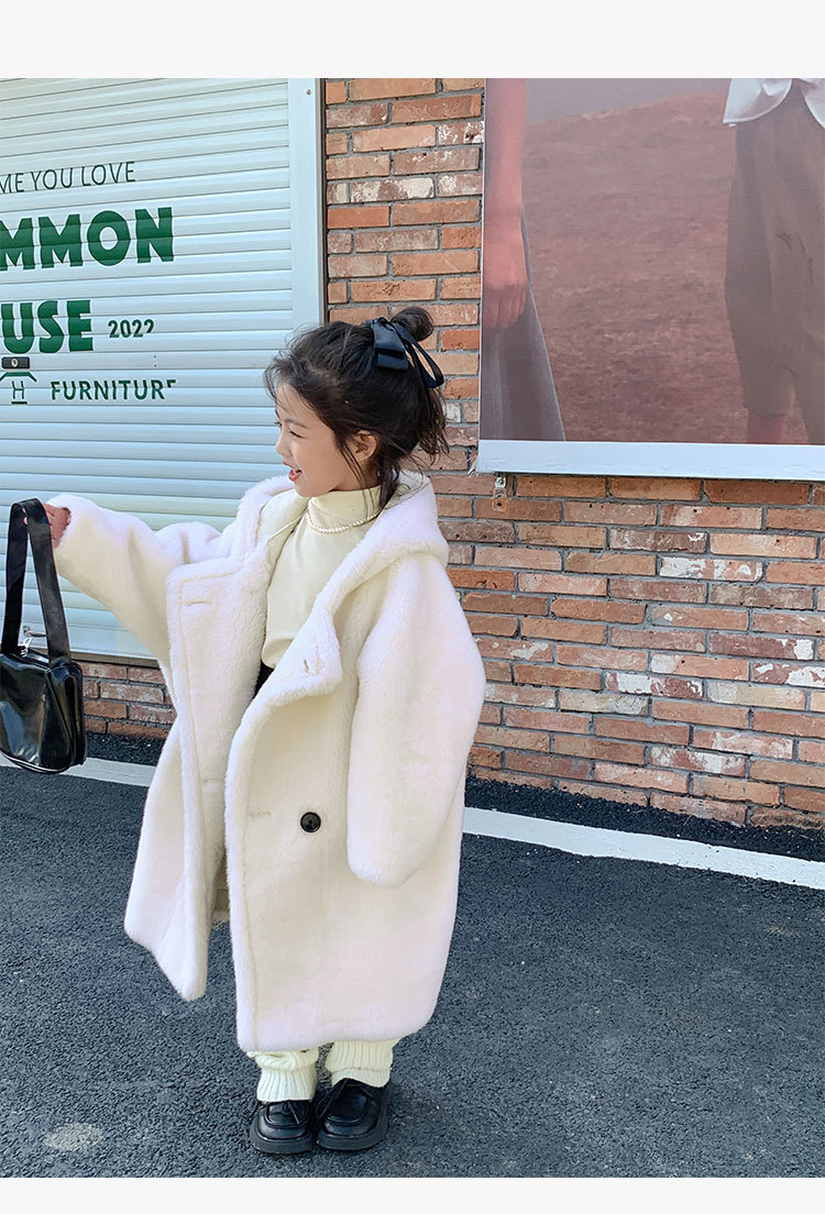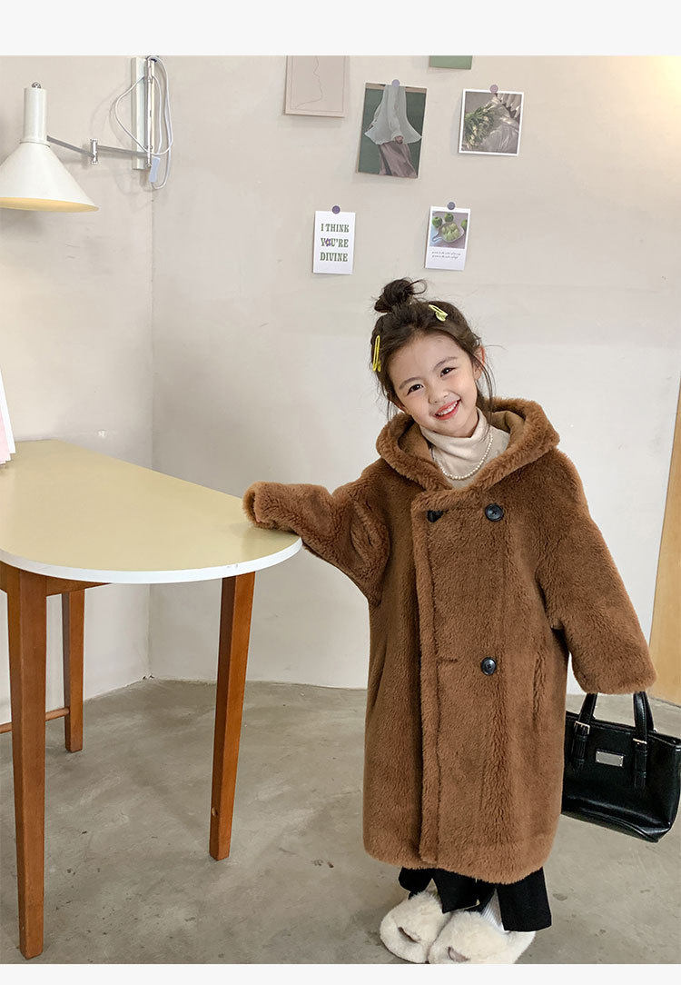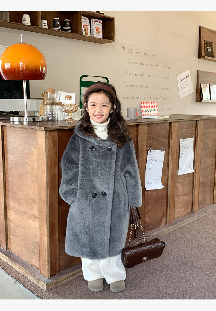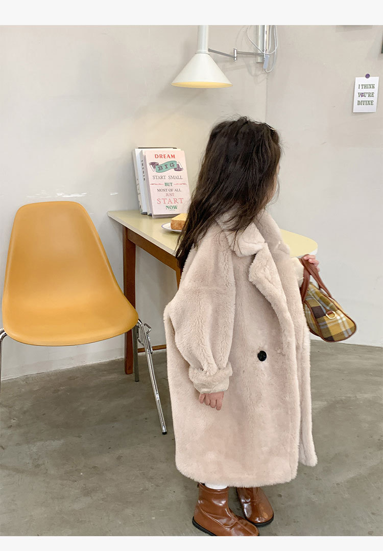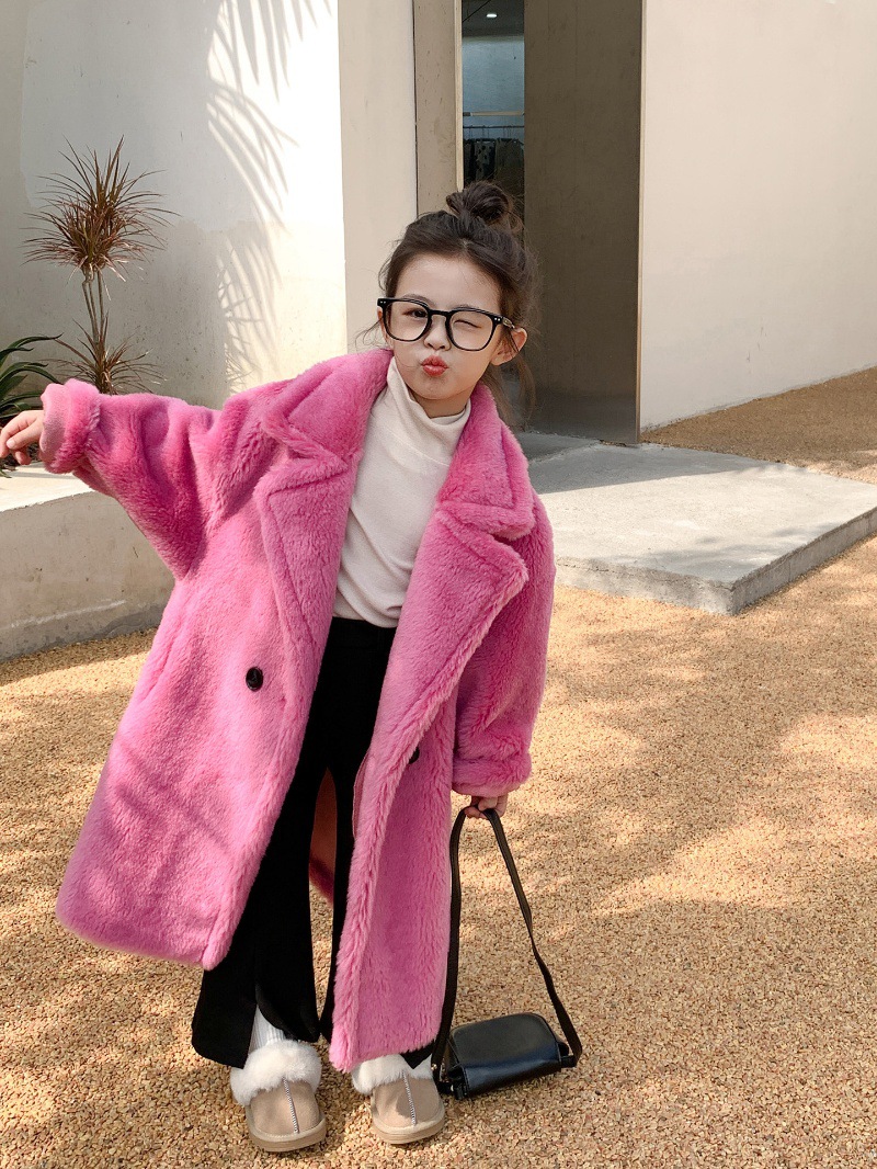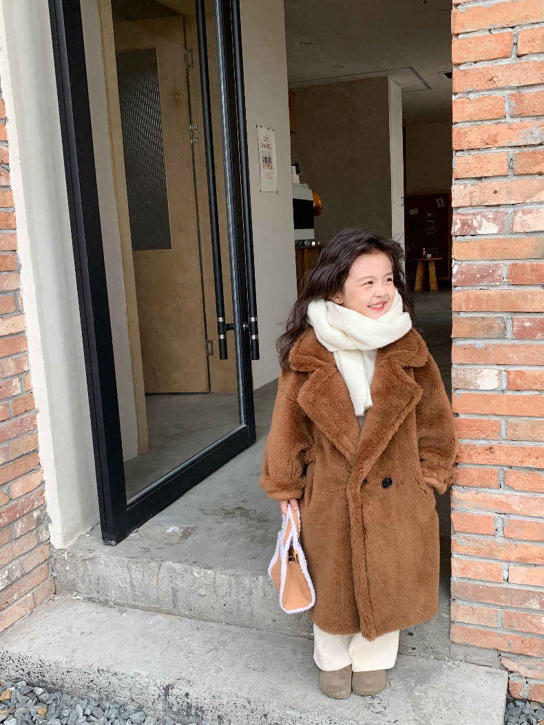 겨울 양모 부모-자식 어린이 테디 베어 코트 걸스 모피 코트 새 양고기 모피 원피스 코트스토어 가기