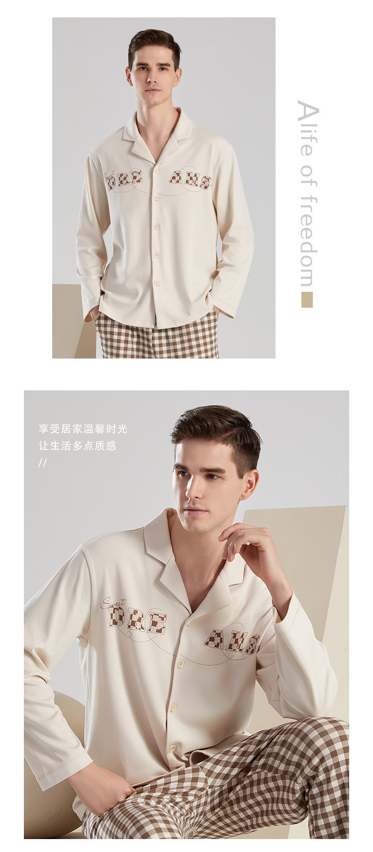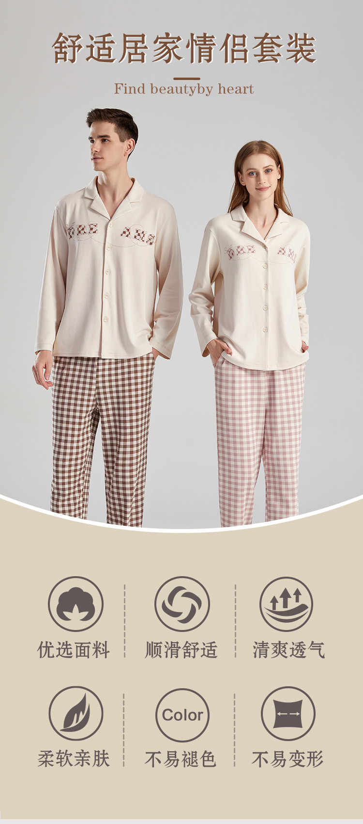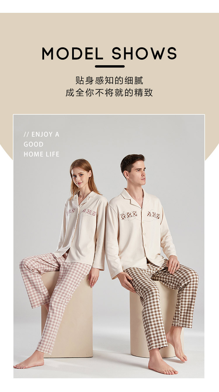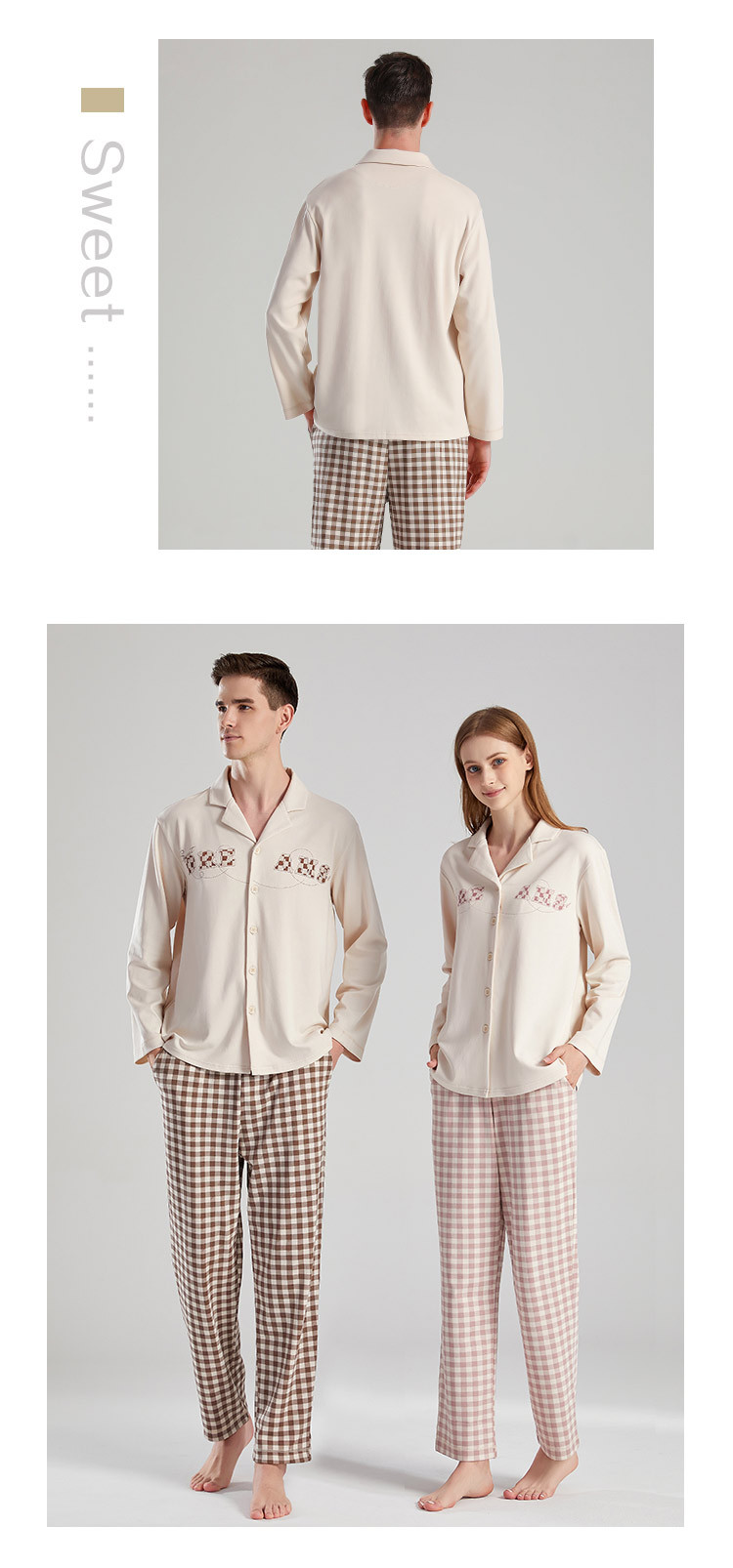 2024 봄과 가을 새 커플 홈 의류 남성과 여성의 순면 잠옷 클래스 홈 간단한 긴 소매 바지스토어 가기