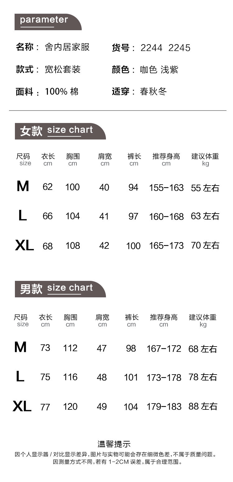 2024 봄과 가을 새 커플 홈 의류 남성과 여성의 순면 잠옷 클래스 홈 간단한 긴 소매 바지