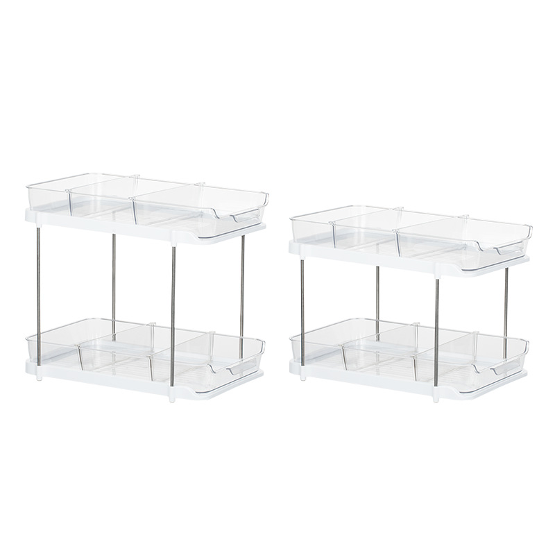 국경 간 주방 보관 더블 레이어 랙 풀 아웃 PET 투명 스토리지 랙 분리 가능한 데스크톱 구성 스토리지 랙