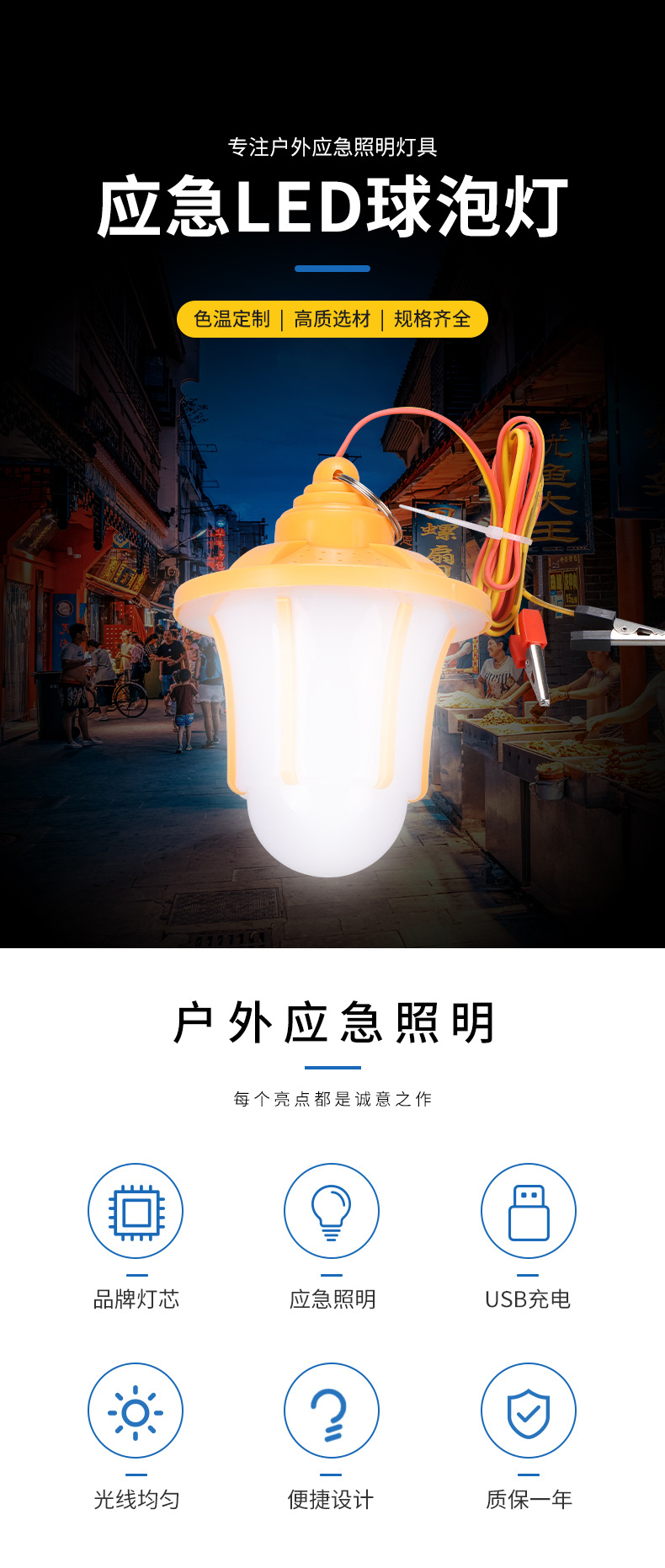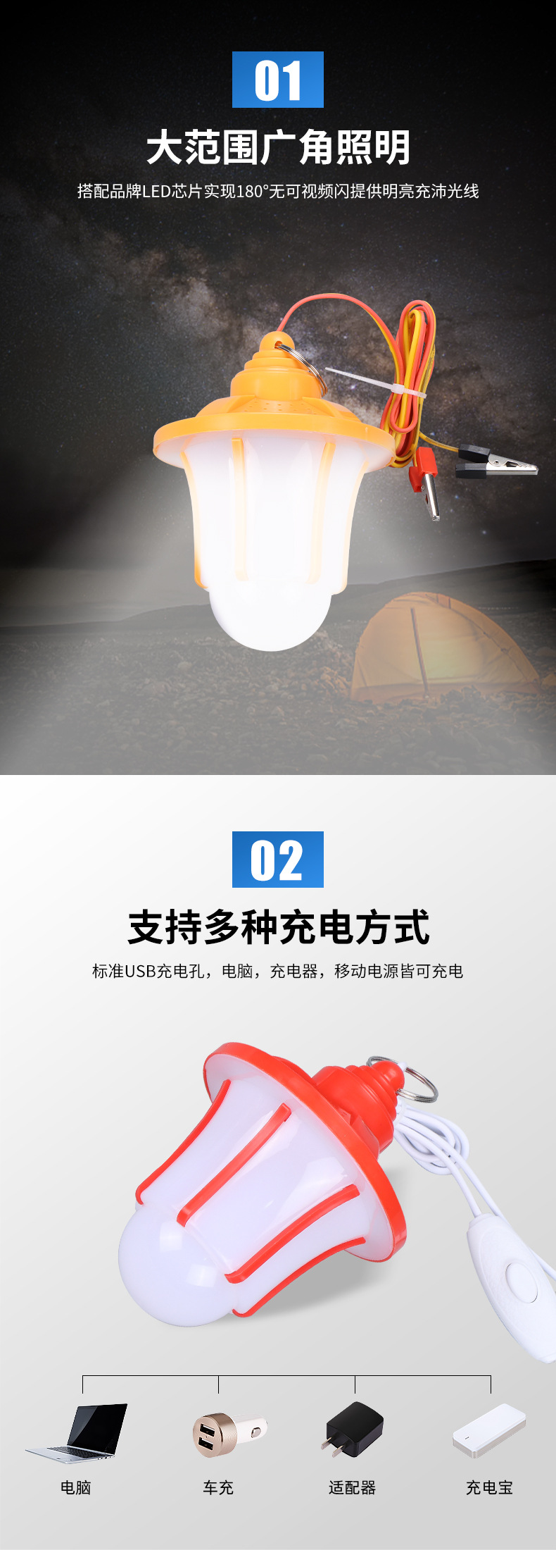 야외 비상 조명 야간 시장 스톨 조명 야외 스톨 조명 휴대용 LED 전구 악어 클립 비상 조명 도매