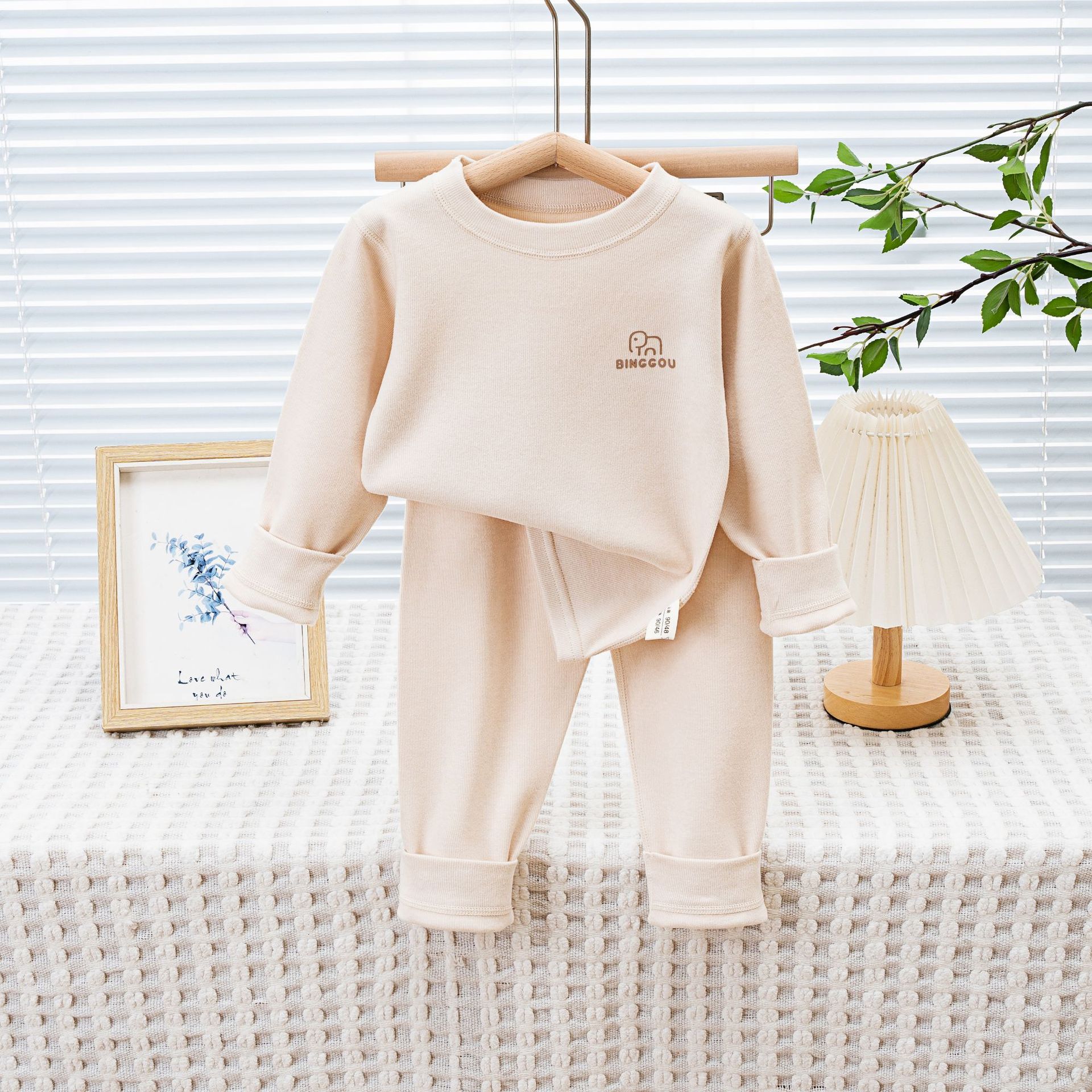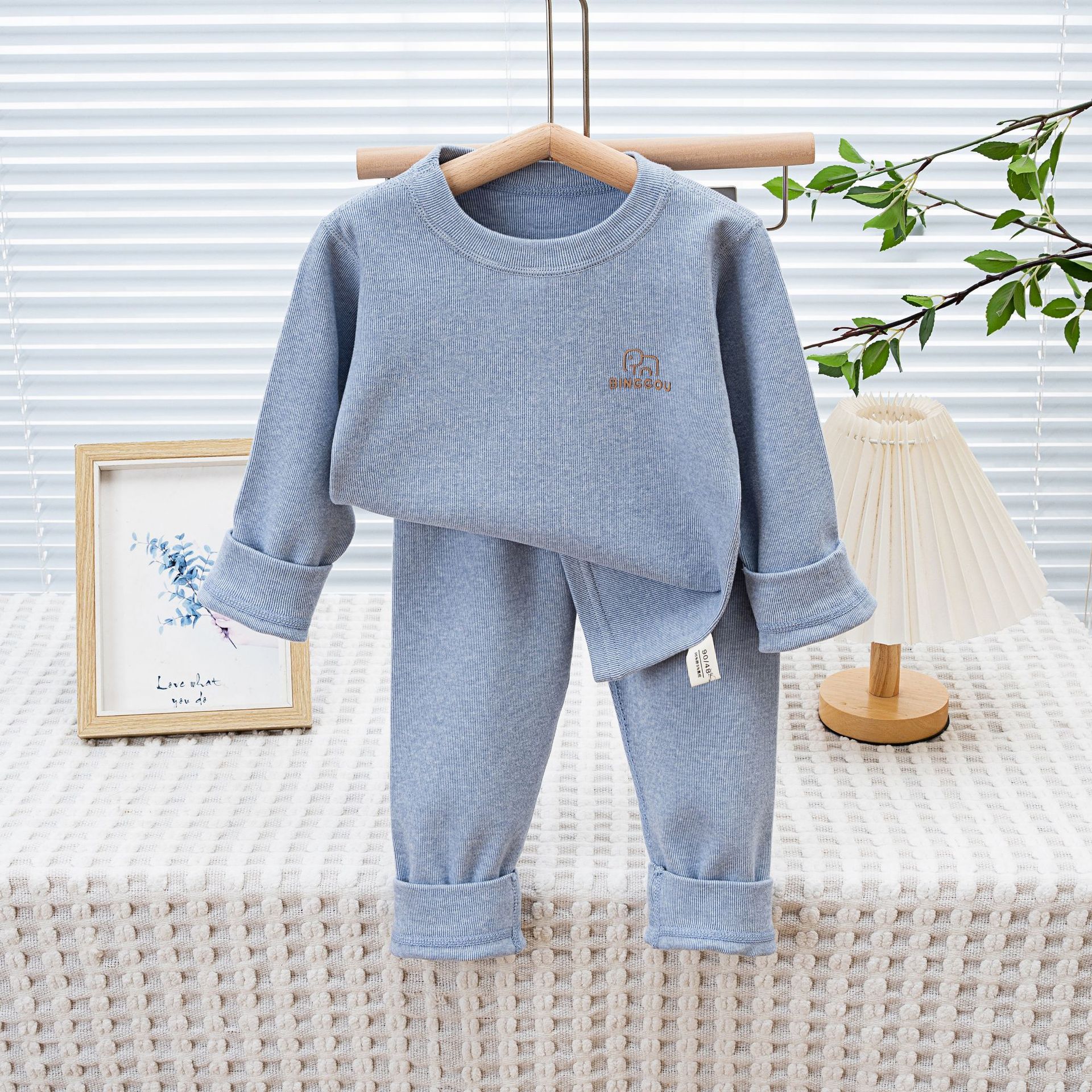 행복한 fuxiao 남학생과 여학생의 가을 옷 긴 바지 아동용 색면 속옷 세트 면화 어린이 잠옷 집스토어 가기