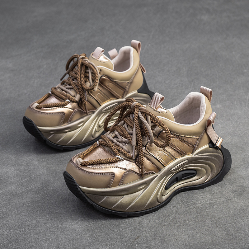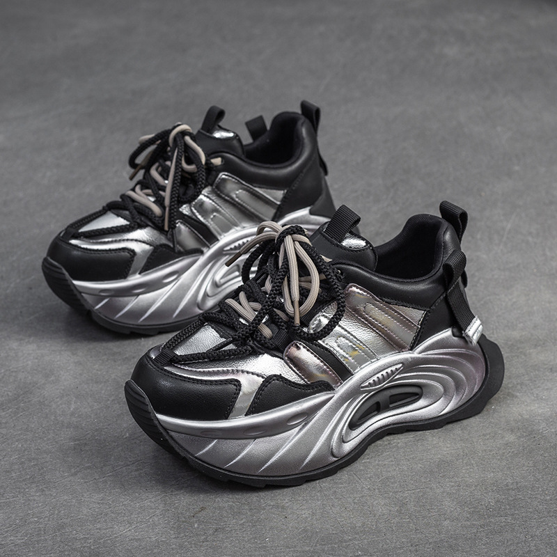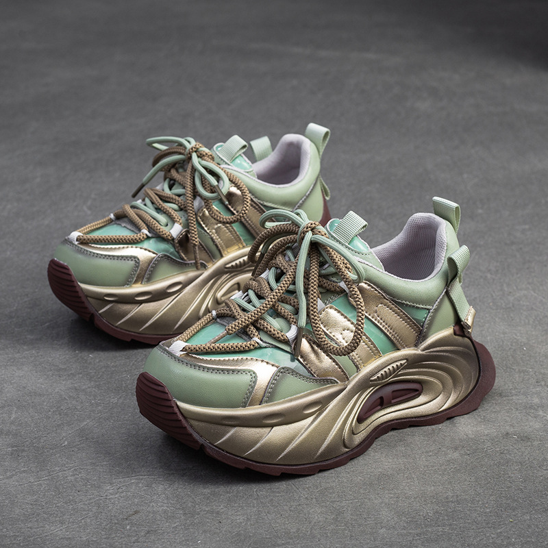 상하이 Jie shu 2024 봄 새로운 캐주얼 대비 컬러 투박한 신발 플랫폼 힐 높이 증가 싱글 레이어 신발 패션 유럽과 미국 여성 신발스토어 가기