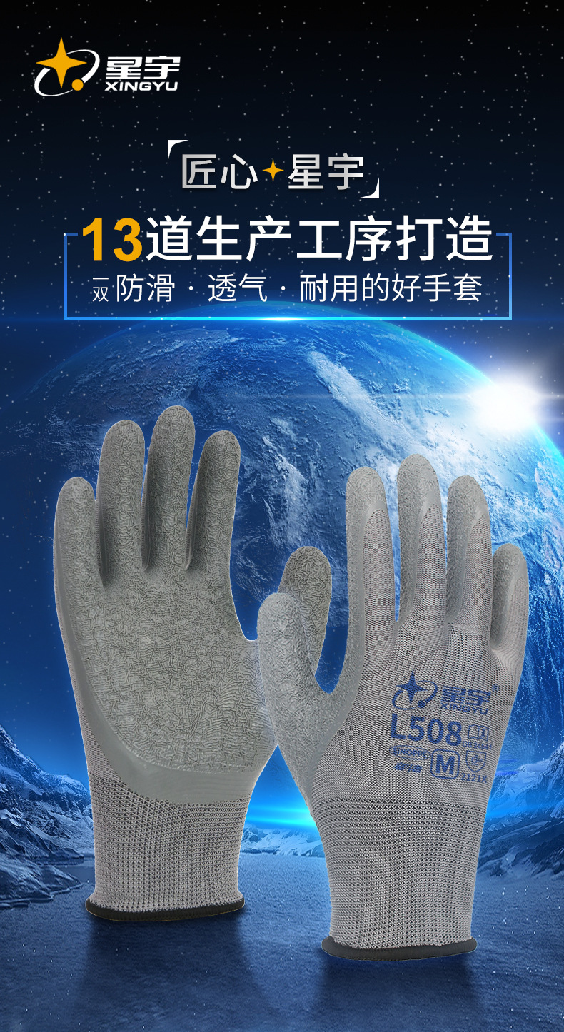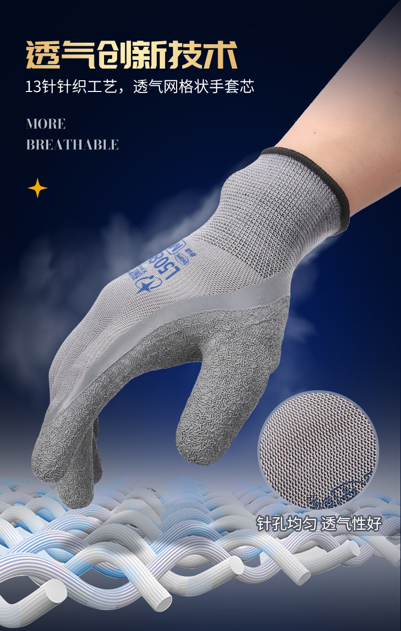 성유 노동 보호 장갑 FM325 라텍스 코팅 내마모성 미끄럼 방지 도매 건설 현장 작업 보호 통기성 편안함스토어 가기