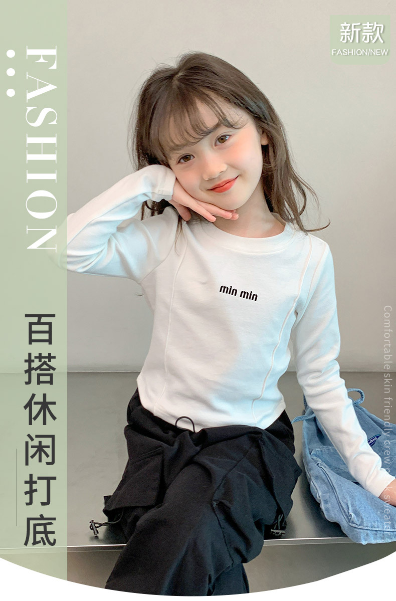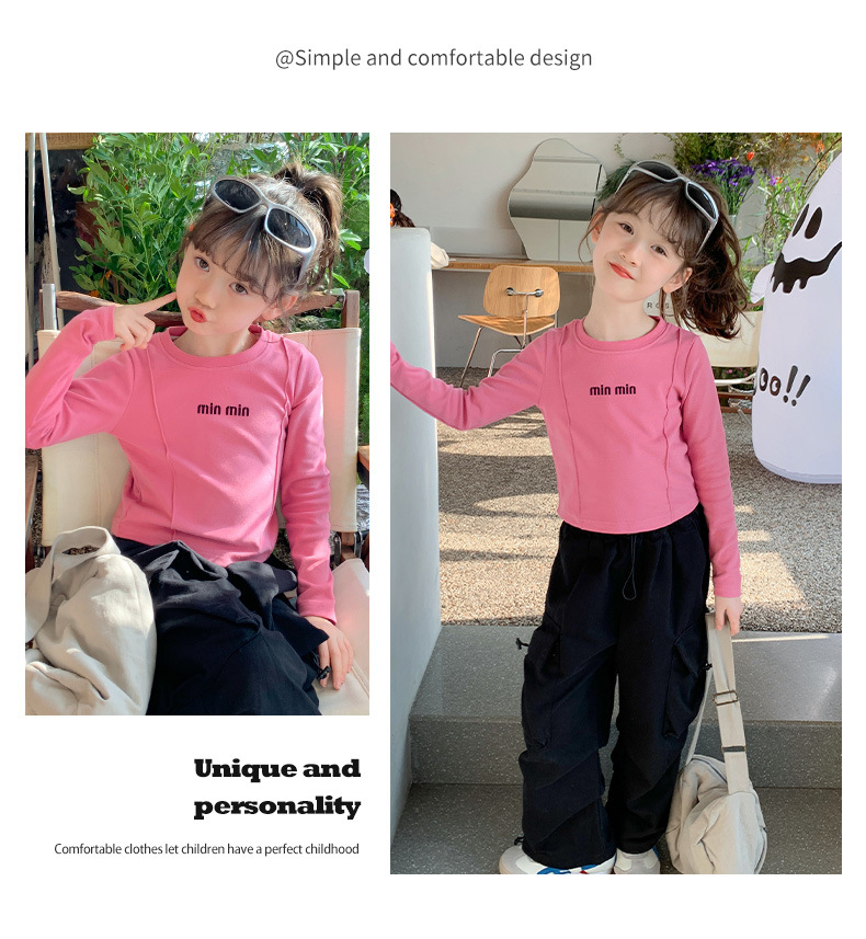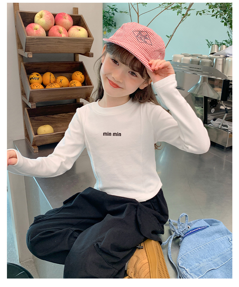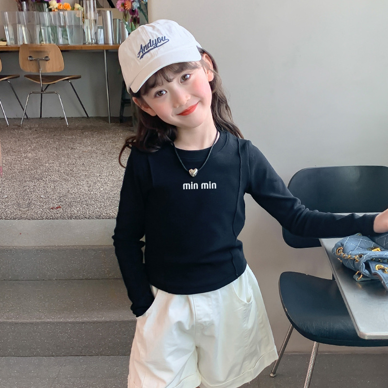 알파벳 무늬 순면 여아 이너웨어 가을 신상 2025 한국 스타일 유아동 티셔츠 긴팔 상의 공장 도매
