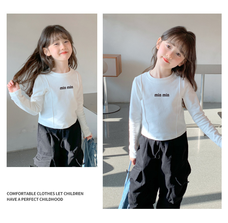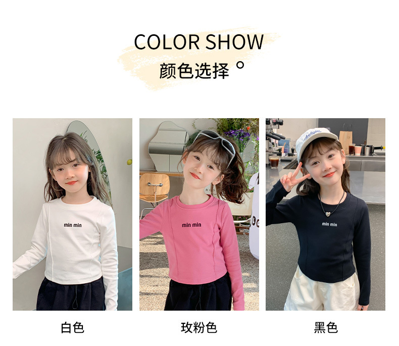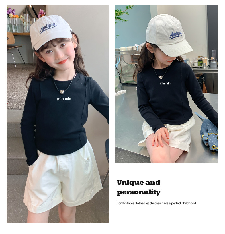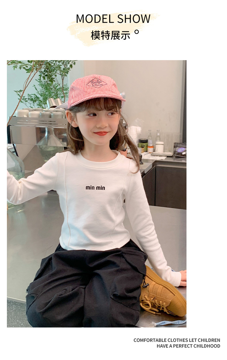 알파벳 무늬 순면 여아 이너웨어 가을 신상 2025 한국 스타일 유아동 티셔츠 긴팔 상의 공장 도매스토어 가기