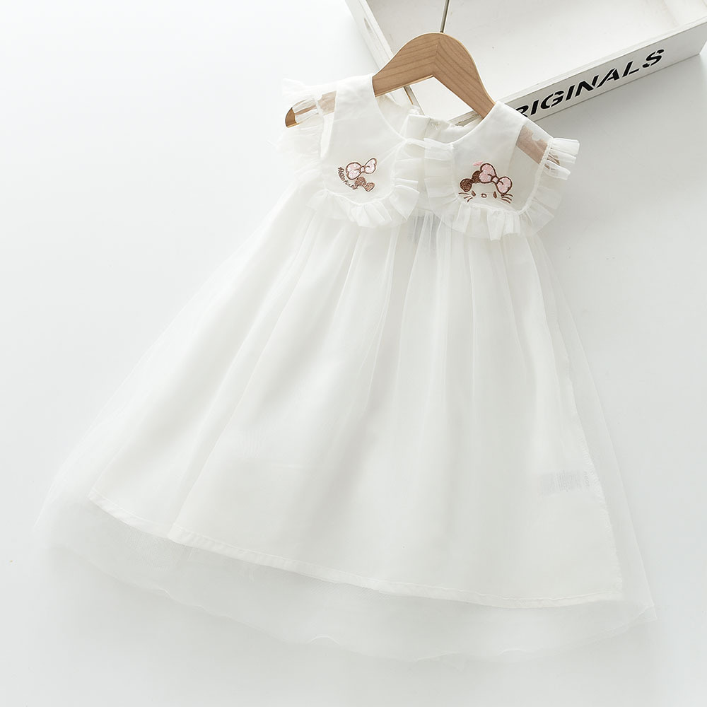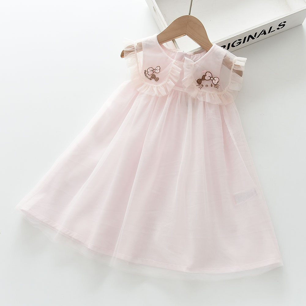 2024夏季新款 领口卡通绣花 女童网纱背心连衣裙