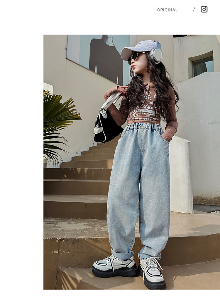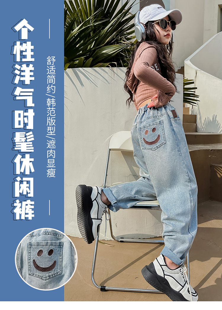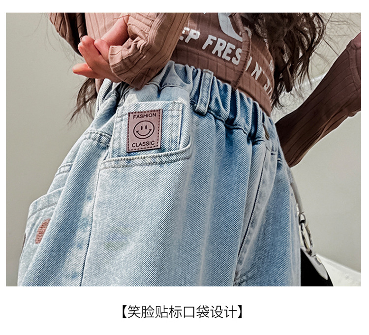 여성을위한 라이트 블루 웃는 스트레이트 와이드 레그 청바지 2024 봄 새로운 패션 스트레이트 하이 웨이스트 스마일리 청바지스토어 가기