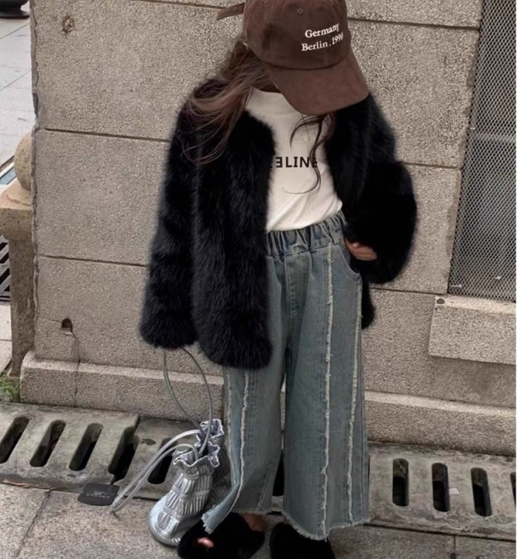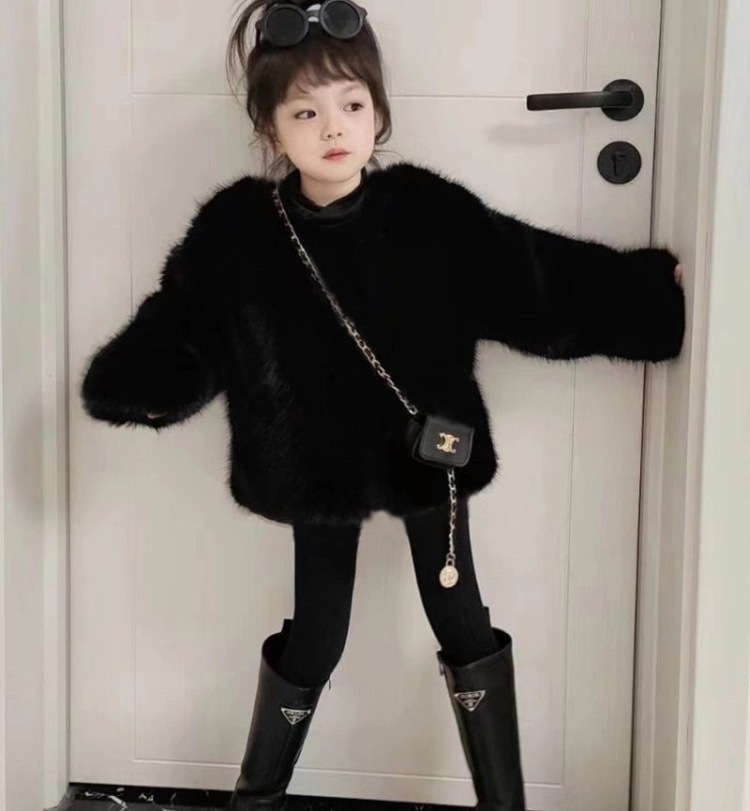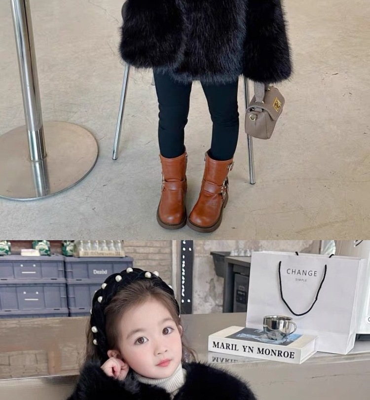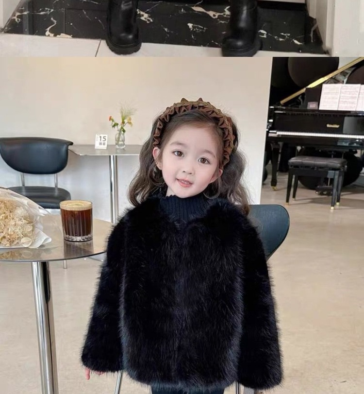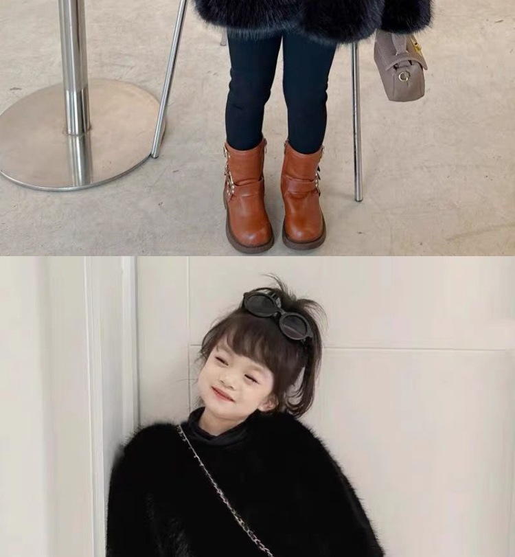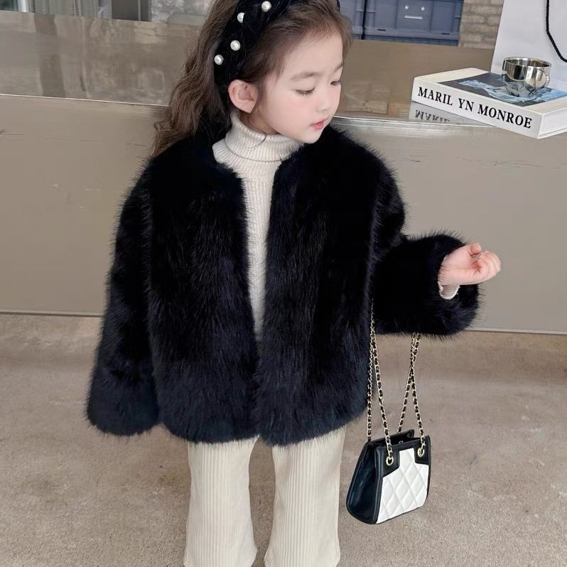 2023 새로운 한국식 소녀 모피 코트 모조 여우 모피 아동면 패딩 코트 기모 두꺼운 소년 모피 겨울 의류스토어 가기