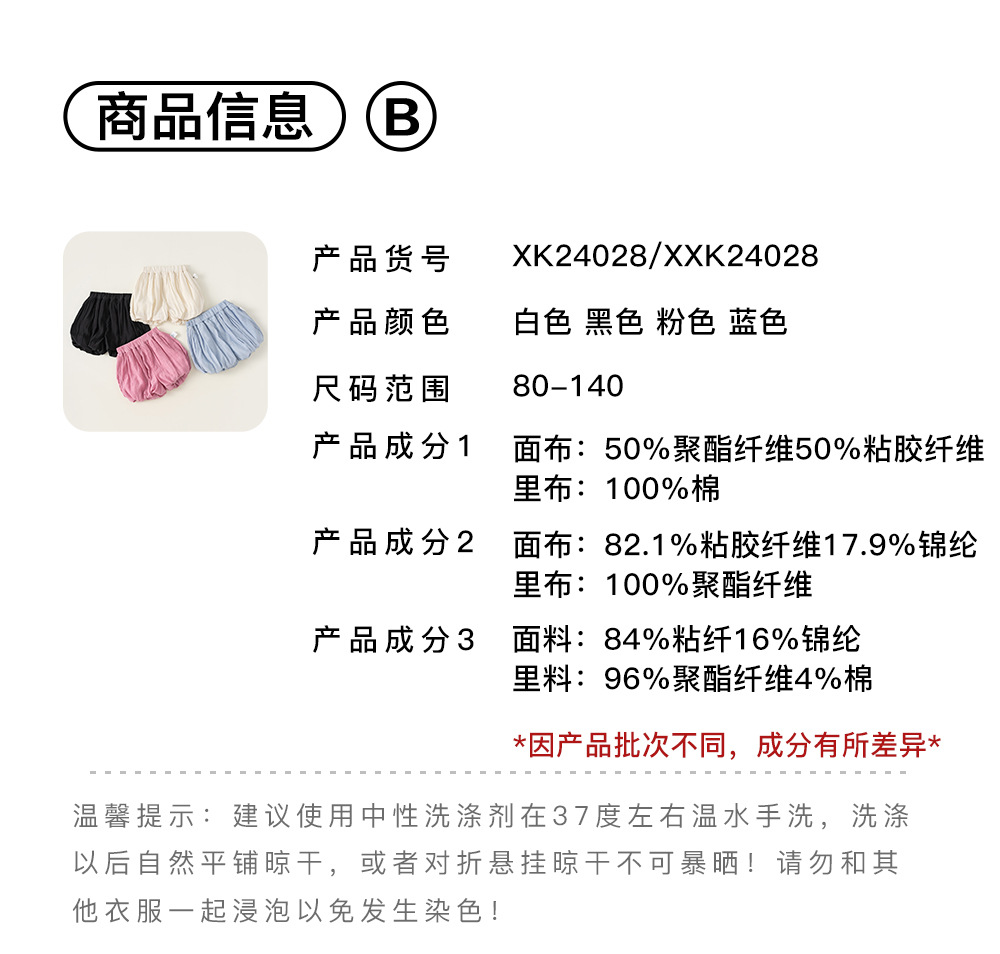 유바오 아동복 여아 서양식 꽃 배 바지 여름 어린이 반바지 단색 달콤한 블루머스 XK24028