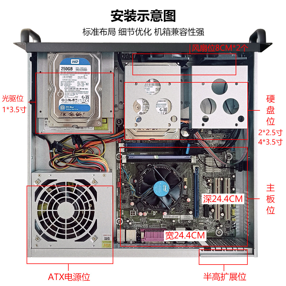 새로운 2U 섀시 400MM 멀티 하드 디스크 비트 NAS 광학 드라이브 비트 MATX 마더 보드 ATX 전원 USB3.0 산업용 블랙스토어 가기