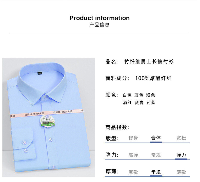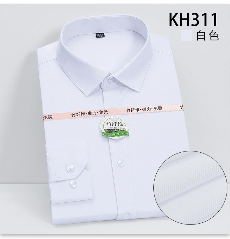 대나무 섬유 남성용 긴팔 셔츠 탄성 케어-무료 편안한 남성 셔츠 비즈니스 전문 공식 착용 흰색 셔츠 플러스 사이즈스토어 가기